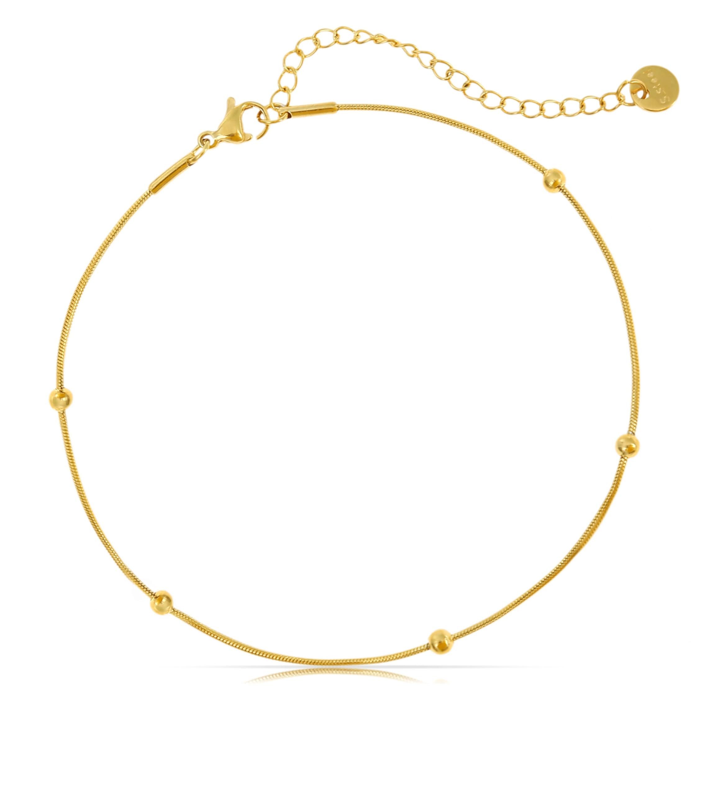 » Entdecke unser elegantes Fussketten für Frauen Wasserfest in Gold! Diese wunderschöne Fußkette Gold ist aus hochwertigem Edelstahl gefertigt und mit goldenen Perlen verziert, die in regelmäßigen Abständen angeordnet sind. Mit einer Длина von 22 cm und einer 5 cm Verlängerung passt die Fußkette Perlen sich perfekt deinem Knöchel an und sorgt für einen Hauch von Luxus in deinem Alltags- oder Abendoutfit.
