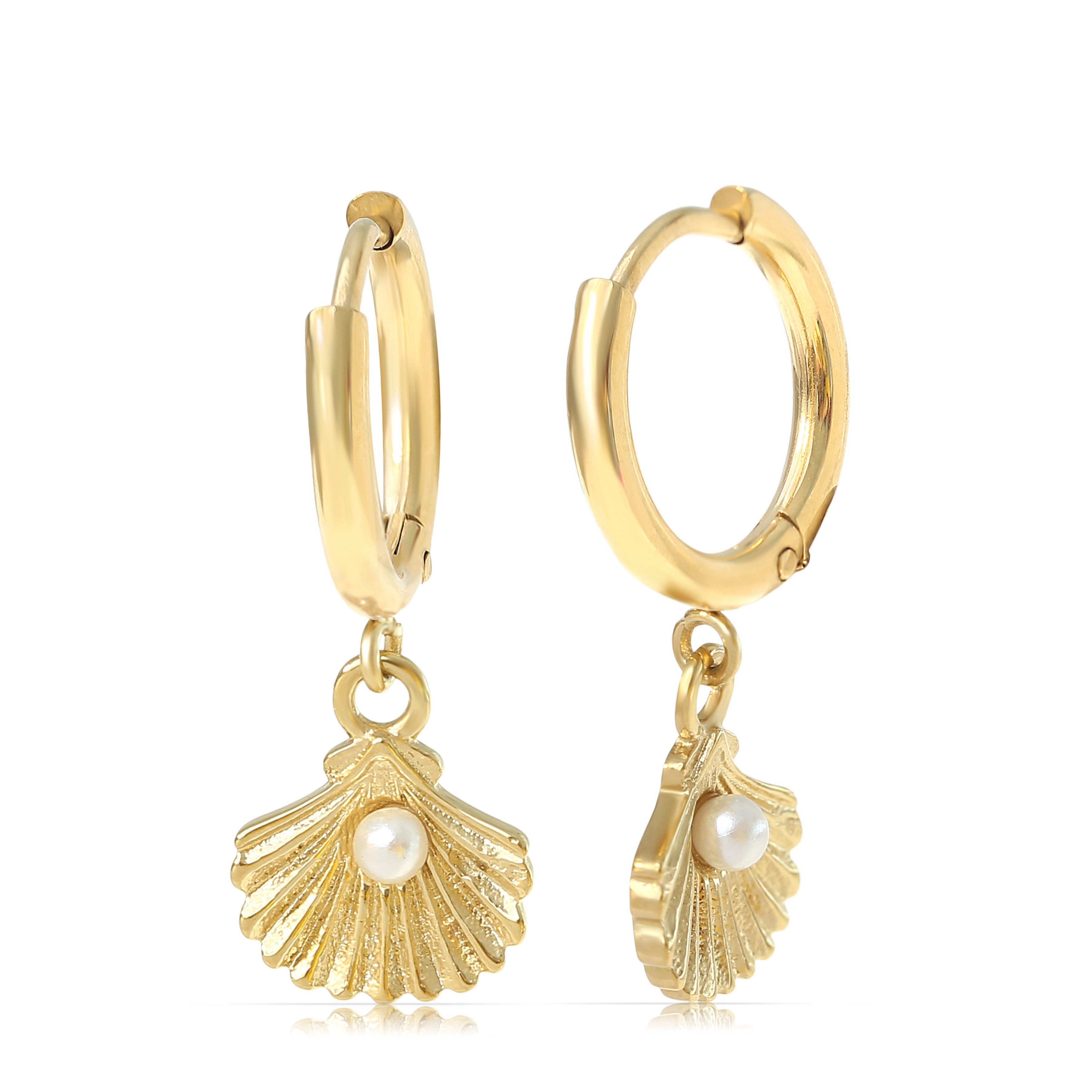 Diese goldfarbenen Ohrhänger überzeugen mit fein gearbeiteten Muschelanhängern, die durch eine zarte Süßwasserperle veredelt werden. Das maritime Design verbindet sommerliche Eleganz mit stilvoller Leichtigkeit und erinnert an Sonne, Strand und Urlaubsmomente.