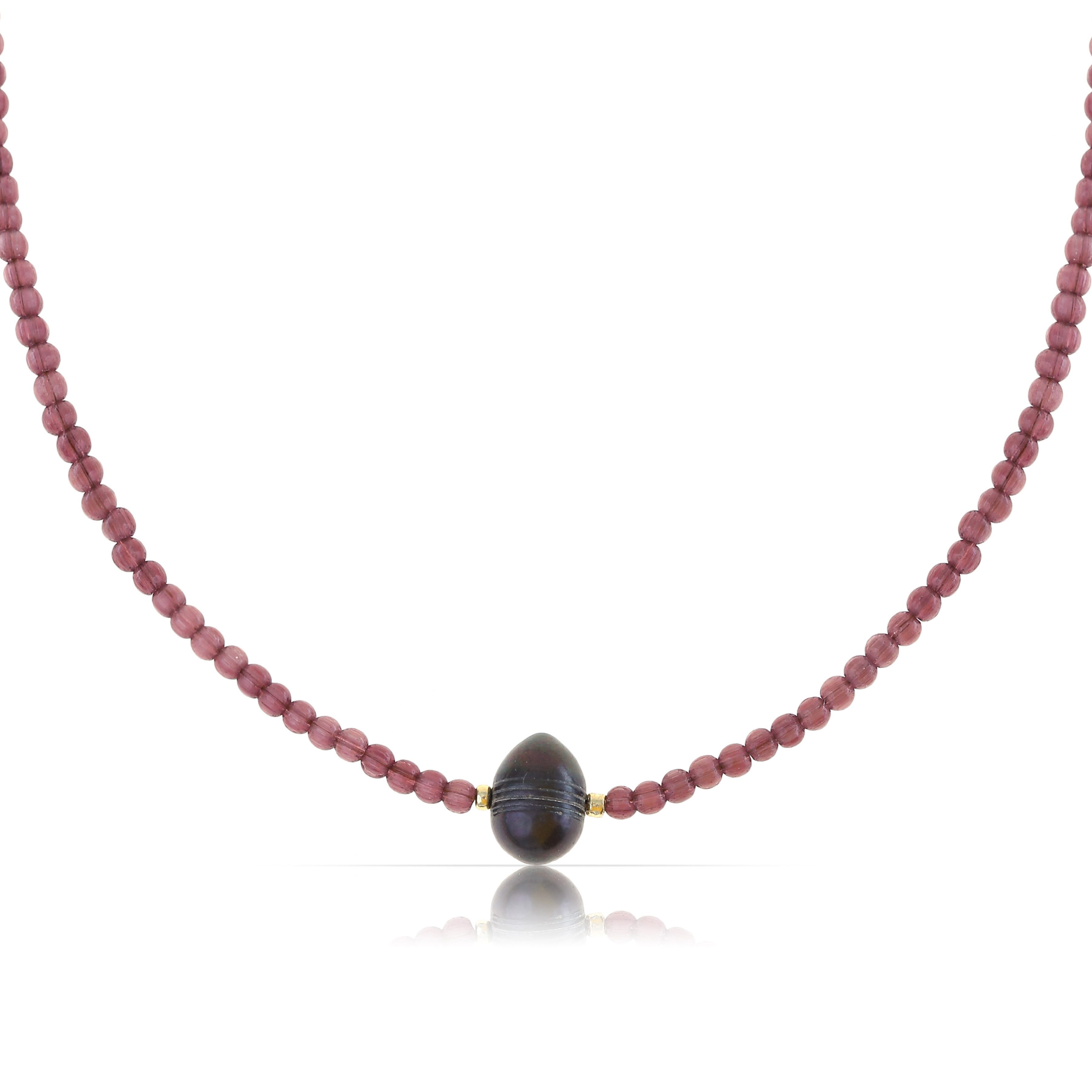 Die Farbkombination aus lila Glasperlen und einer großen braunen Natursteinperle verleiht dieser Perlenkette eine besondere Ausstrahlung. Der spannende Materialmix sorgt für Eleganz und unterstreicht eine natürliche Note. Das Design ist auf harmonische Weise stilvoll und auffällig und macht jedes Outfit zu etwas Besonderem.