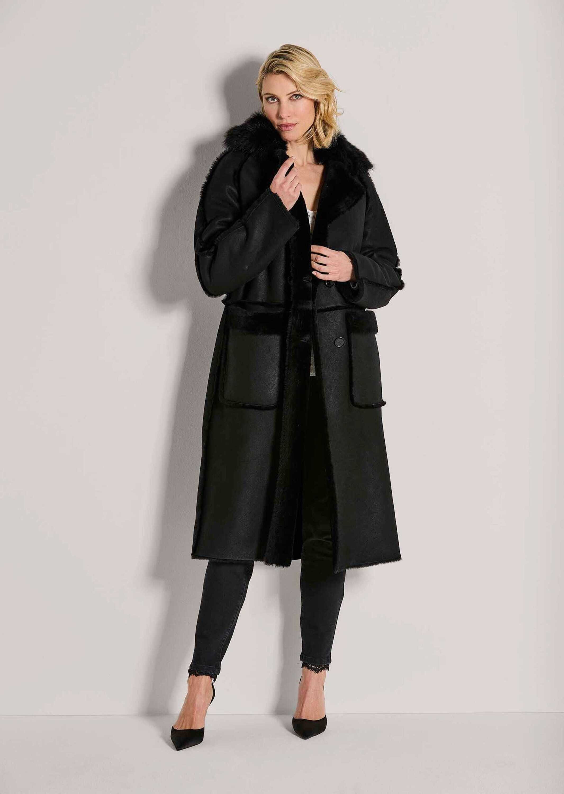 Zeitlose Eleganz in ihrer exklusivsten Form. Dieser Mantel vereint höchste Handwerkskunst mit edelsten Naturmaterialien. Lammfell begeistert hier mit zwei luxuriösen Seiten: Einer Innenseite aus flauschig weichem Fell und einer Außenseite in samtigem Veloursleder. Der elegant geschnittene Zweireiher erhält durch seinen weit ausladenden Reverskragen eine souveräne Präsenz. Aufgesetzte Taschen und Ziernähte mit Fellkante unterstreichen die handverlesene Ästhetik. Farblich abgestimmte Knöpfe fügen sich harmonisch in das Gesamtbild ein und runden den Look stilvoll ab. Ein stilistisches Multitalent, das mit zeitloser Schönheit und spürbarem Luxus begeistert und von Business bis Casual kombiniert werden kann. Für alle, die das Besondere lieben.
