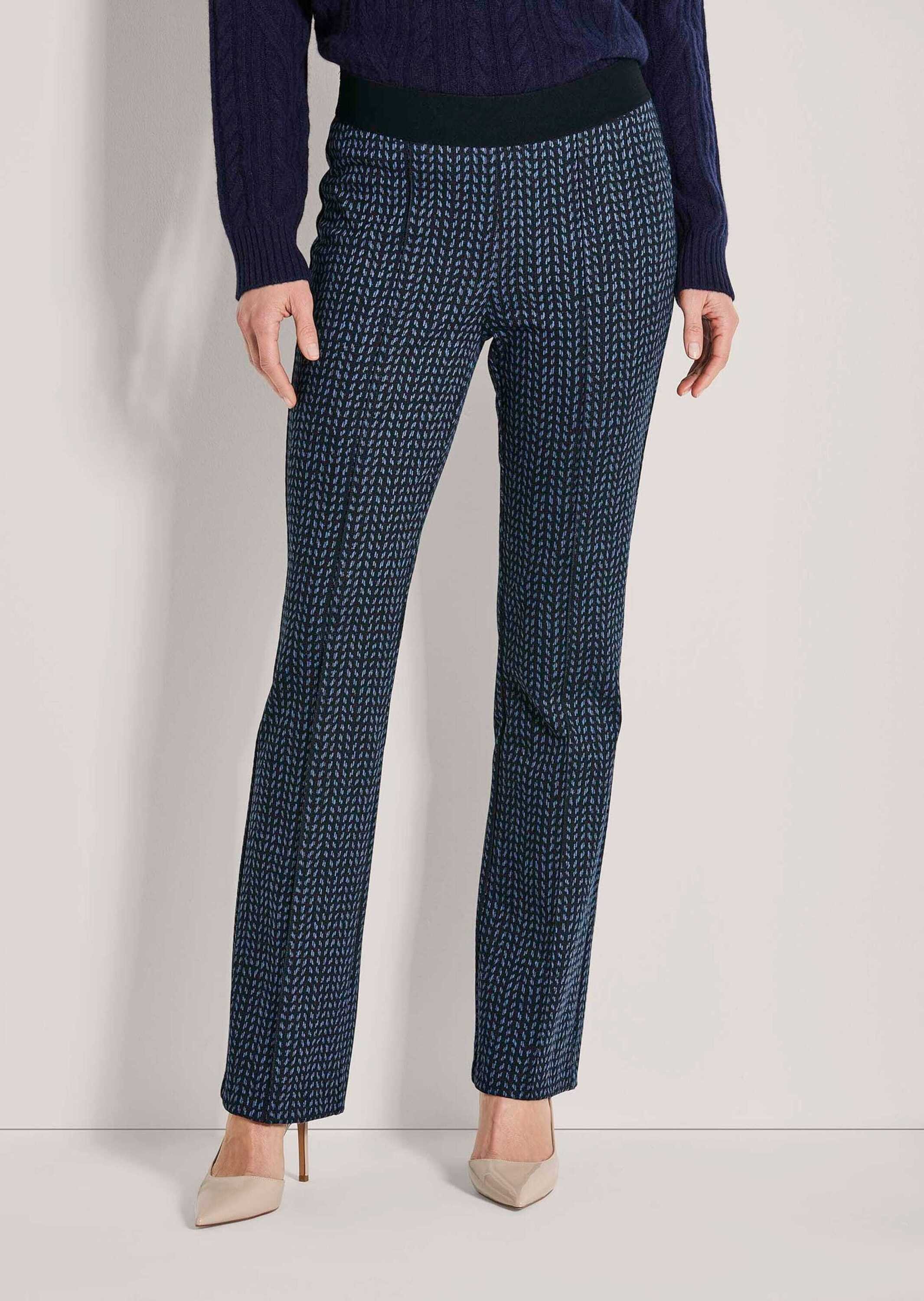 Bequem-Looks sind salonfähig geworden und haben sich längst aus der verstaubten Homewear-Ecke verabschiedet. Schlupfhosen sind hier die Stars der Stunde und bringen Komfort und Modernität in Einklang. Mit ihrer leicht ausgestellten Beinform wird dieses Modell zum echten Trendsetter und sorgt optisch für schlanke, lange Beine. Abgesteppte Längsbiesen unterstreichen den Effekt und ergänzen den Look mit dezent gepflegter Note. Das trendstarke Minimal-Design der Hose begeistert mit farbharmonischem Kontrastspiel und verleiht dem Style seine zauberhafte Ausstrahlung. Der breite, unifarbene Elastikbund schmiegt sich sanft an die Hüfte und ist super bequem zum Schlüpfen.