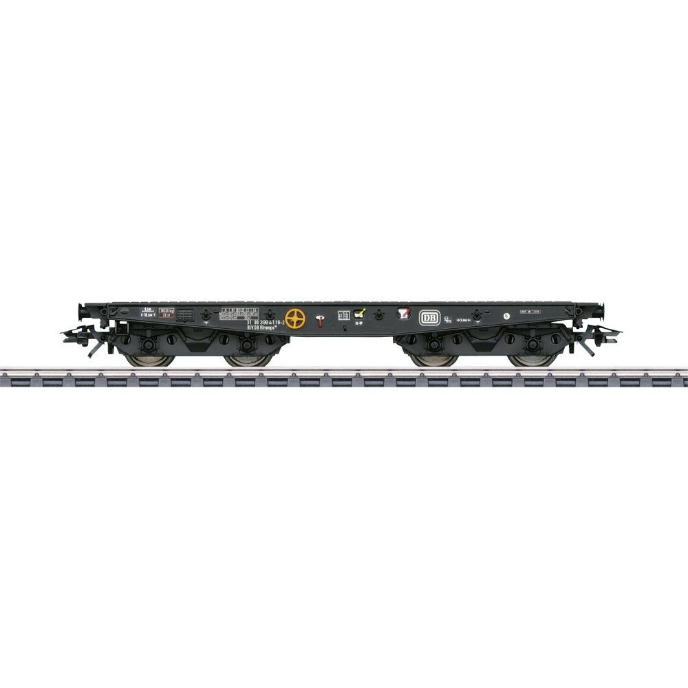 Schwerlast-Flachwagen Bauart Rlmmps 650 der Deutschen Bundesbahn (DB). Ohne Bühnengeländer, mit Überfahrflächen über den Puffern. Betriebszustand um 1980