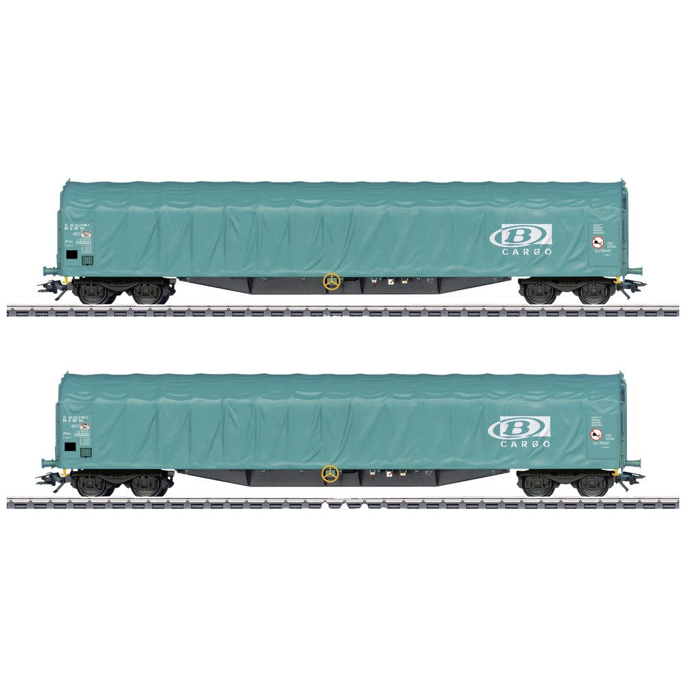 Vorbild: Set bestehend aus zwei 4-achsigen Schiebeplanenwagen Bauart Rils der Belgischen Staatsbahnen (SNCB), Geschäftsbereich B Cargo. Europäische Standardbauart mit 19,90m Длина. Betriebszustand ab 2010.