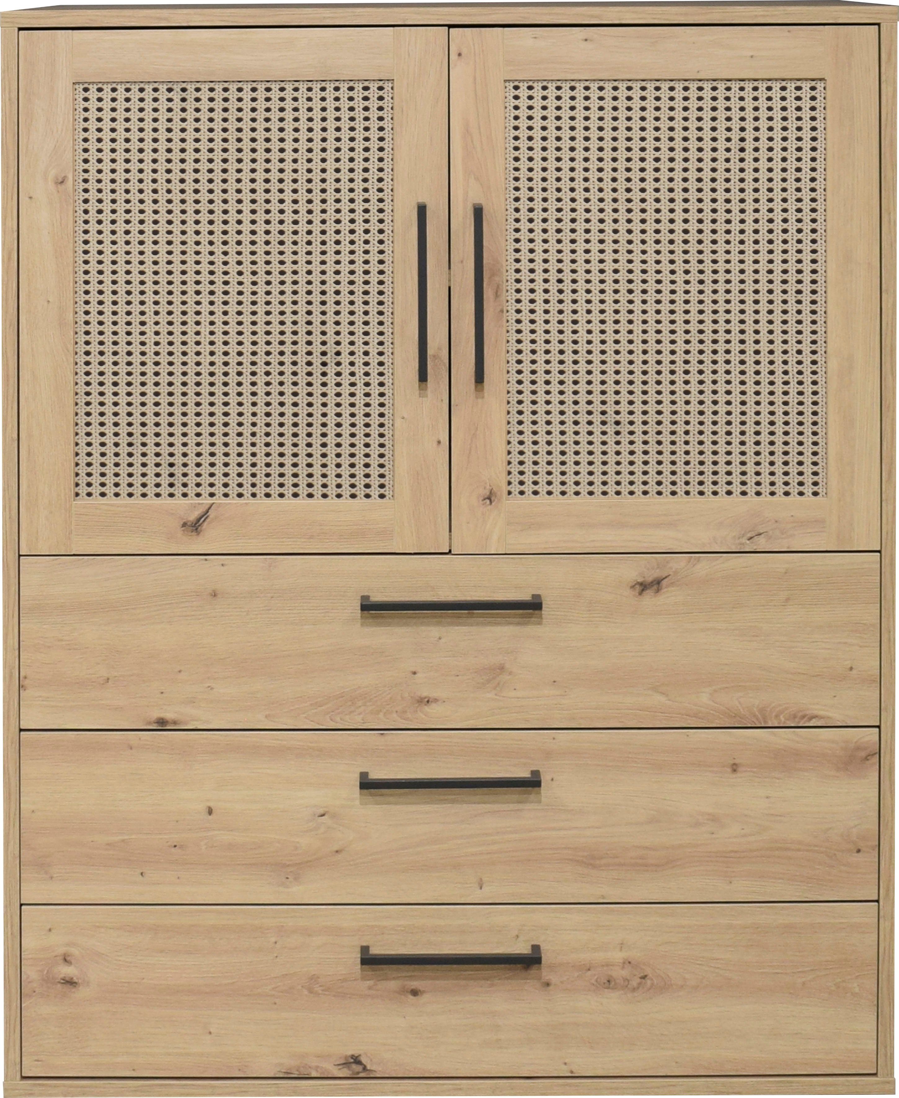 Modern designt, lässt sich die Kommode mit vielen Einrichtungsstilen harmonisch kombinieren. Als Inspiration: Indem du die Einrichtung-Accessoires in dezenten Farben wie Weiß oder Grau hältst, unterstreichst du den minimalistischen, cleanen Stil. Es ist Bestandteil der Serie Vienna. Von dieser kannst du dich beim Einrichten inspirieren lassen.