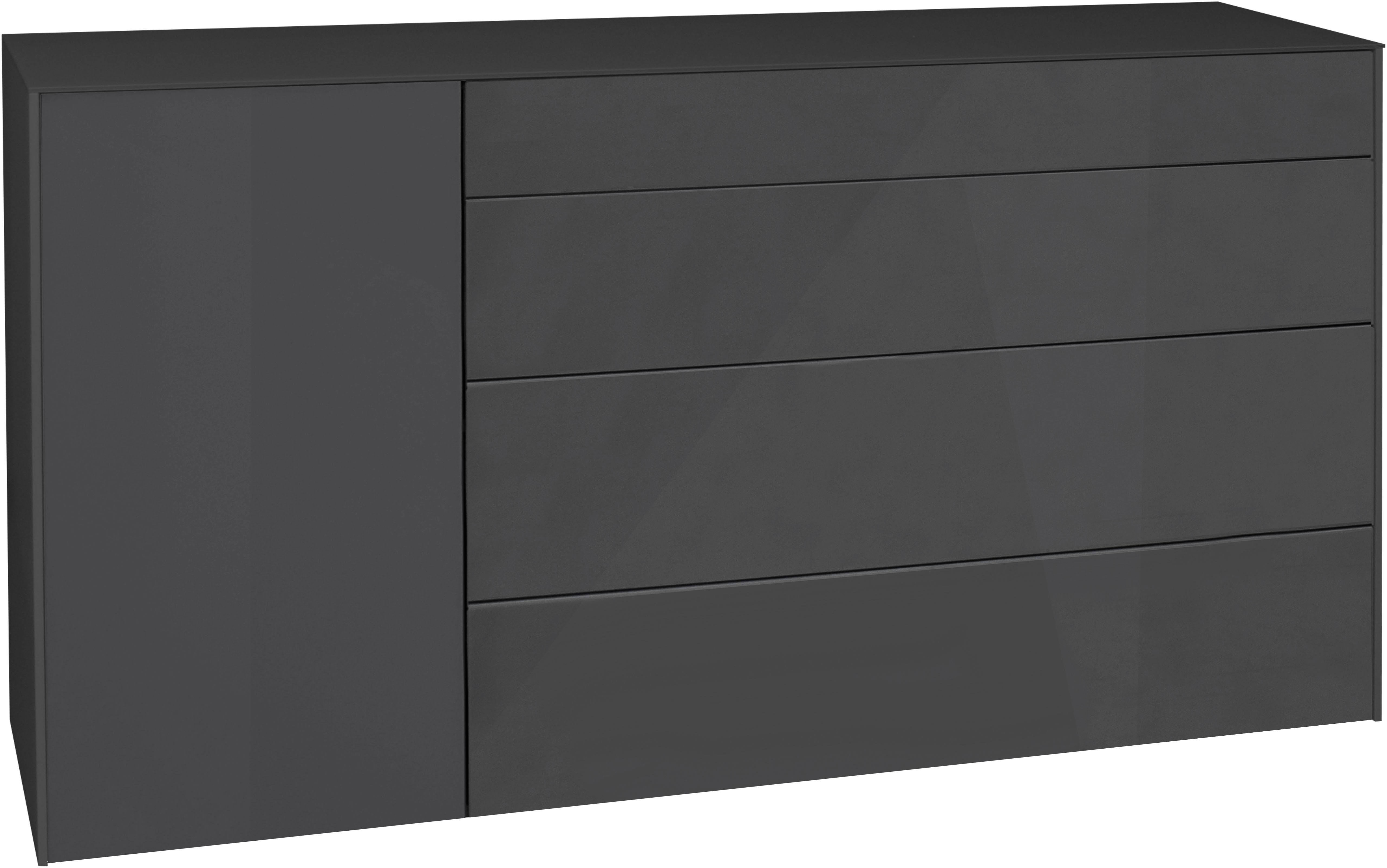 Schick und smart: Diese Kommode »Imola TOPSELLER!« von Mäusbacher bietet dir im Innern viel Platz für deine Sachen. Da das Sideboard mit Push-to-open-Funktion ausgestattet ist, reicht schon ein kurzer Druck und die grifflosen Türen öffnen sich wie von allein. Das ist praktisch und sorgt für eine cleane Optik. Da sich der Türanschlag flexibel montieren lässt, kannst du entscheiden, ob du ihn lieber rechts oder links haben möchtest. Die Schubladen bieten dir weitere Unterbringungsmöglichkeiten. Das Sideboard steht auf Gleitern. Diese schonen den Boden und verhindern, dass dieser zerkratzt wird. Belastbar ist dein neues Möbelstück mit bis zu 23 Kilogramm. Das Herstellungsland Deutschland ist für seine gute Qualität bekannt. Der Hersteller gewährt dir eine Garantie von 5 Jahren.