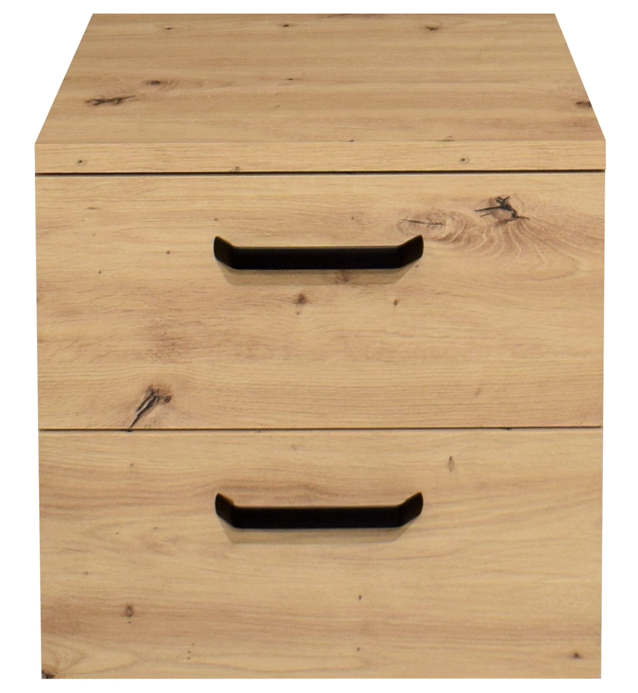 Der Holzwerkstoff, aus dem dieser Schrank besteht, überzeugt mit seiner Stabilität und Tragfähigkeit, wobei die Oberfläche schön ebenmäßig und widerstandsfähig ist. Die modernen Bügelgriffe aus Metall sind stabil und nutzen sich daher nicht so schnell ab. Der Schrank steht auf Gleitern aus Kunststoff. Diese schützen deinen Fußboden vor Kratzern. Belastbar ist dein neues Möbelstück mit bis zu 20 Kilogramm. Hergestellt wurde das Produkt in Deutschland, das für seine hohen Qualitätsstandards bekannt ist. Der Hersteller gewährt dir eine Garantie von 5 Jahren.