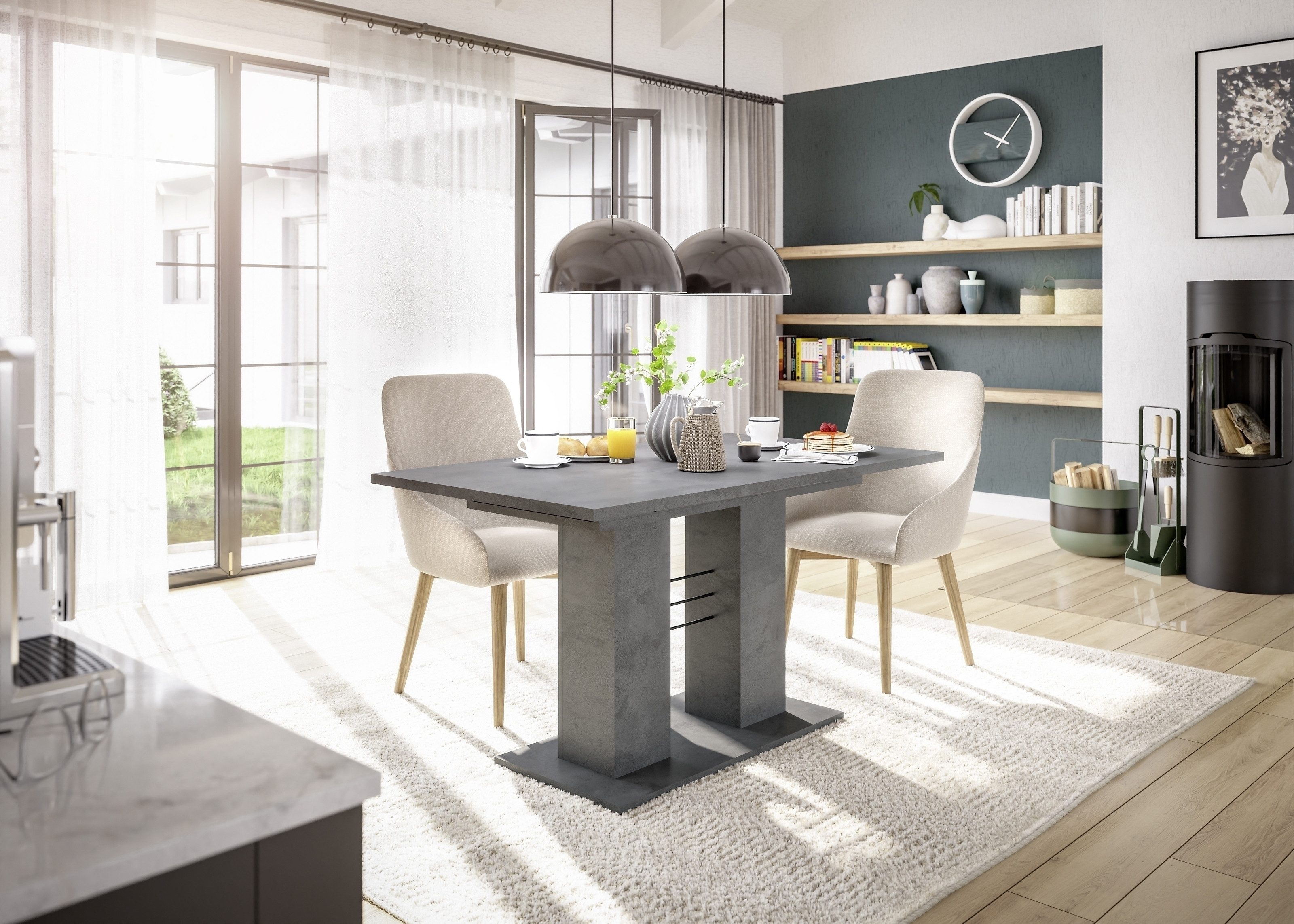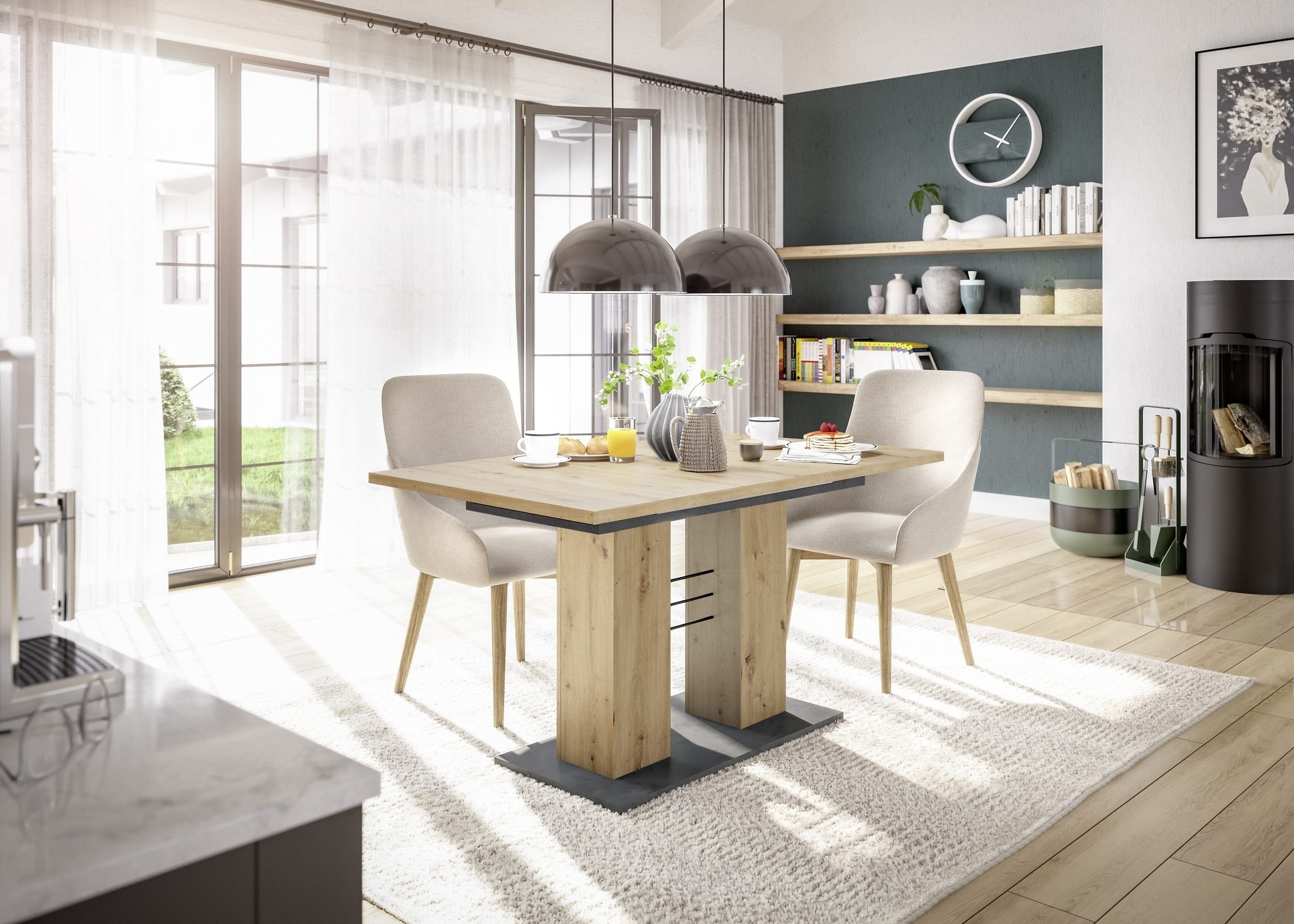 Mäusbacher Säulen-Esstisch (ausziehbar) in asteiche / graphit - 140x76x80cm (BxHxT) (ausziehbar)