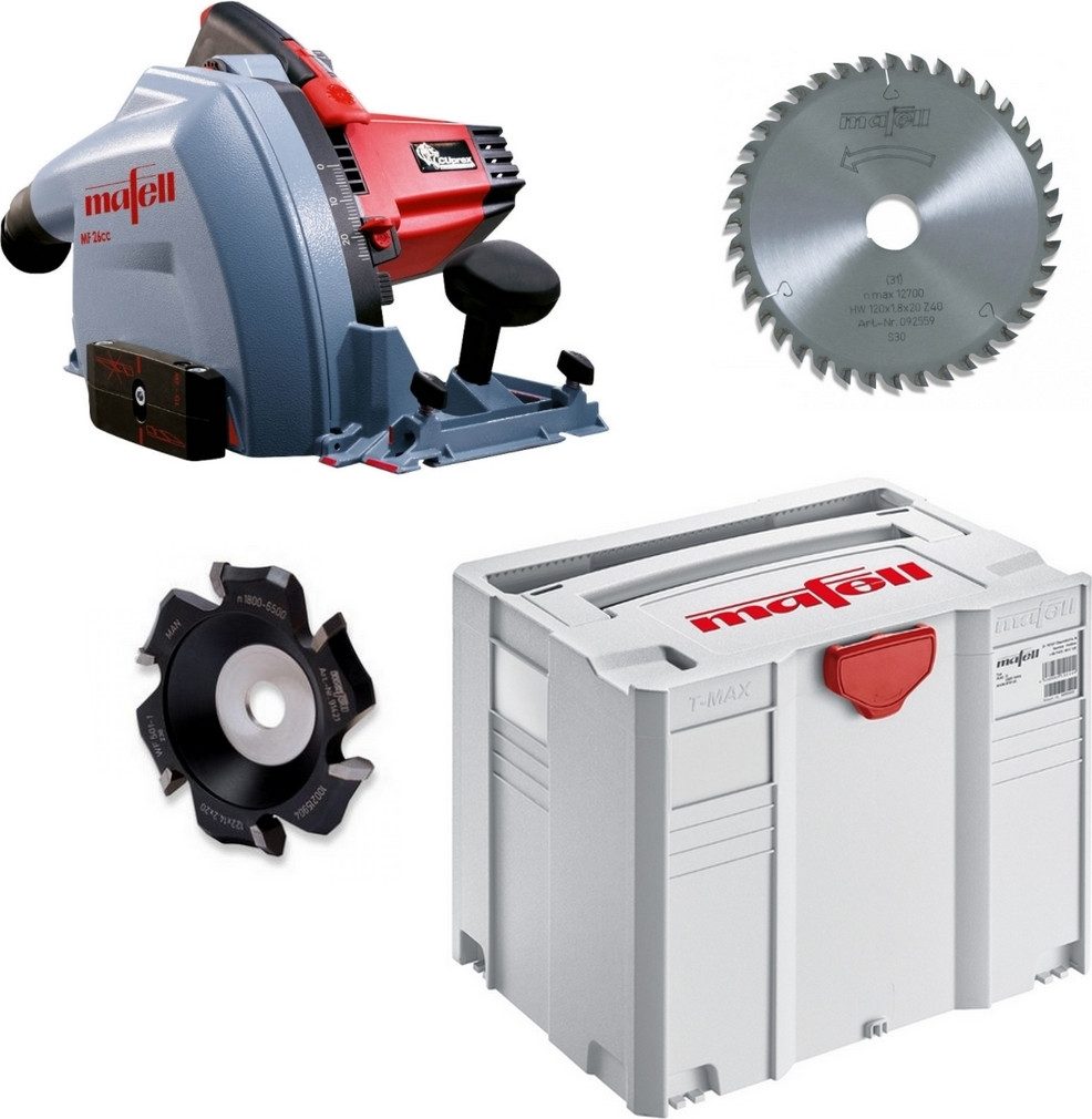 Lieferumfang | 1 Sägeblatt-HM 120 x 1,2/1,8 x 20 mm, Z 40, FZ/TR, für Feinschnitte in Holz; Best. Nr. 092559 1 Aluverbundfräser MF-AF 90, für 90° V-Nuten bis 8 mm Frästiefe (inkl. 2 Positionsanzeiger und 1 Späneabweiser); Best. Nr. 206076 1 Parallelanschlag; Best. Nr. 206038 1 Anschlussleitung 4 m; Best. Nr. 087323 Transport- und Aufbewahrungsbox T-MAX |