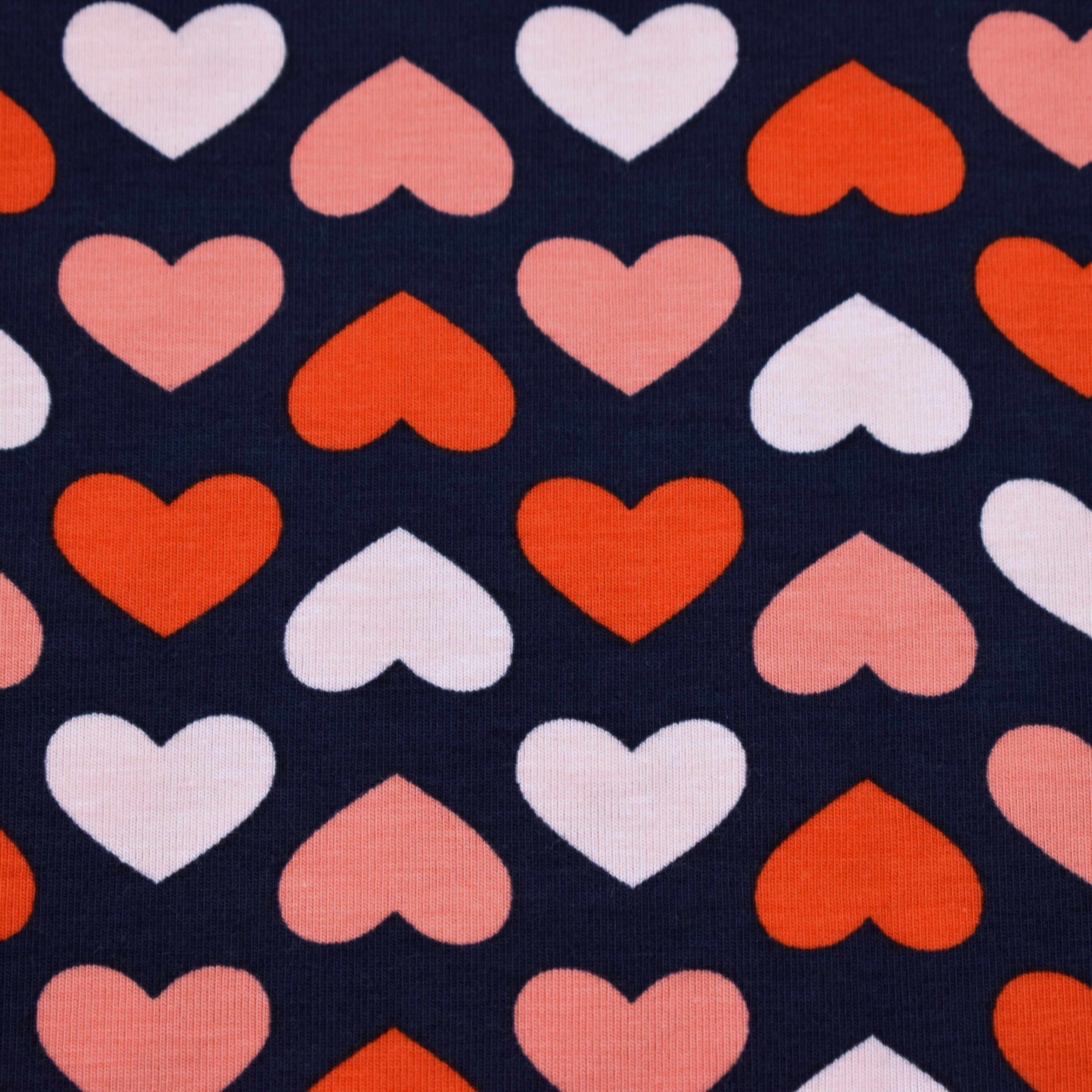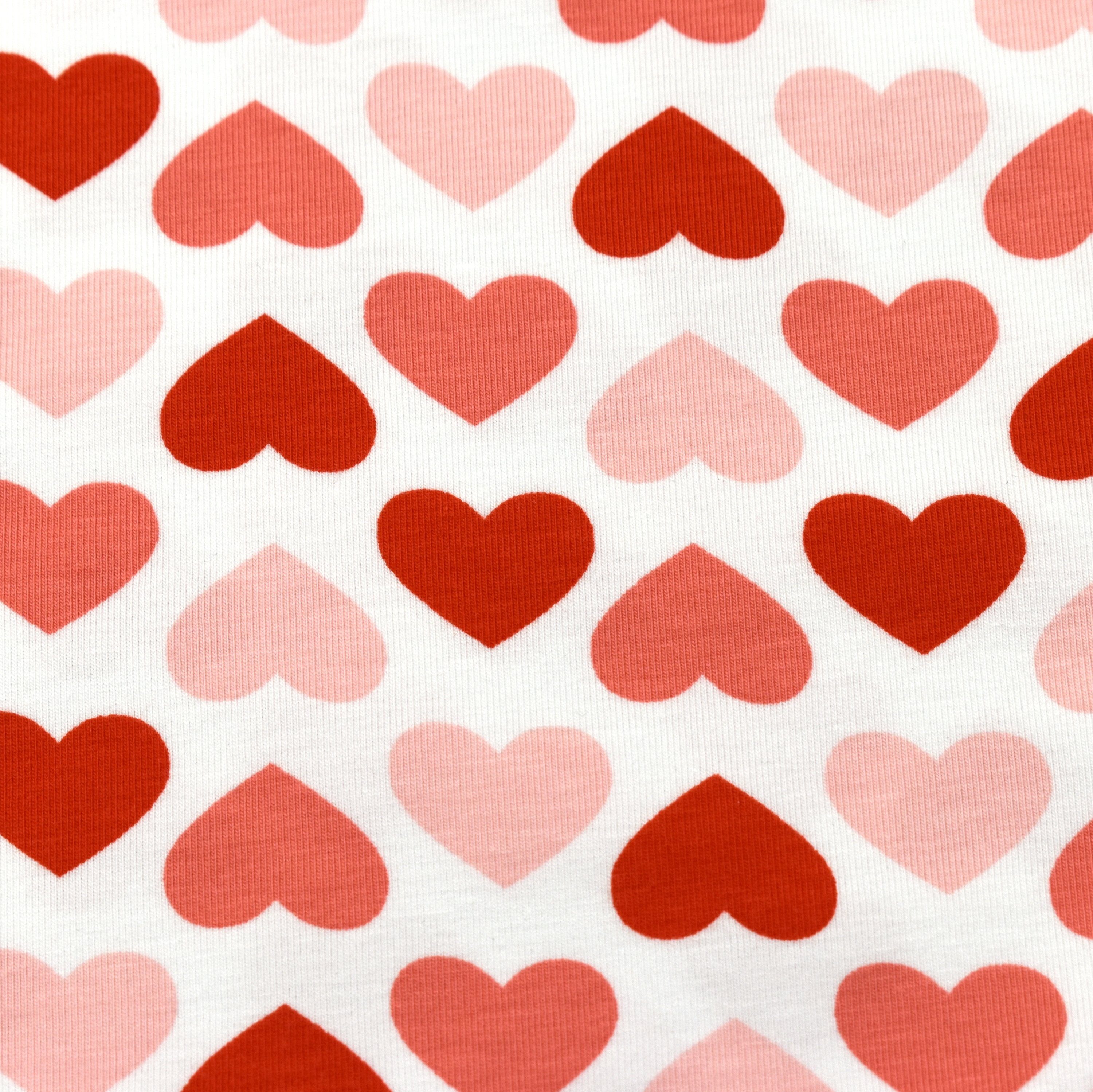Unser Baumwolljersey "Herzen" ist dein perfekter Kinderstoff für alle Arten von Kleidung. Ein hochwertiger Stoff aus europäischer Produktion, nach GOTS + OEKO-TEX Standard 100 . "Herzen" ist elastisch, robust, pflegeleicht, atmungsaktiv und dabei wunderbar weich auf der Haut zu tragen.