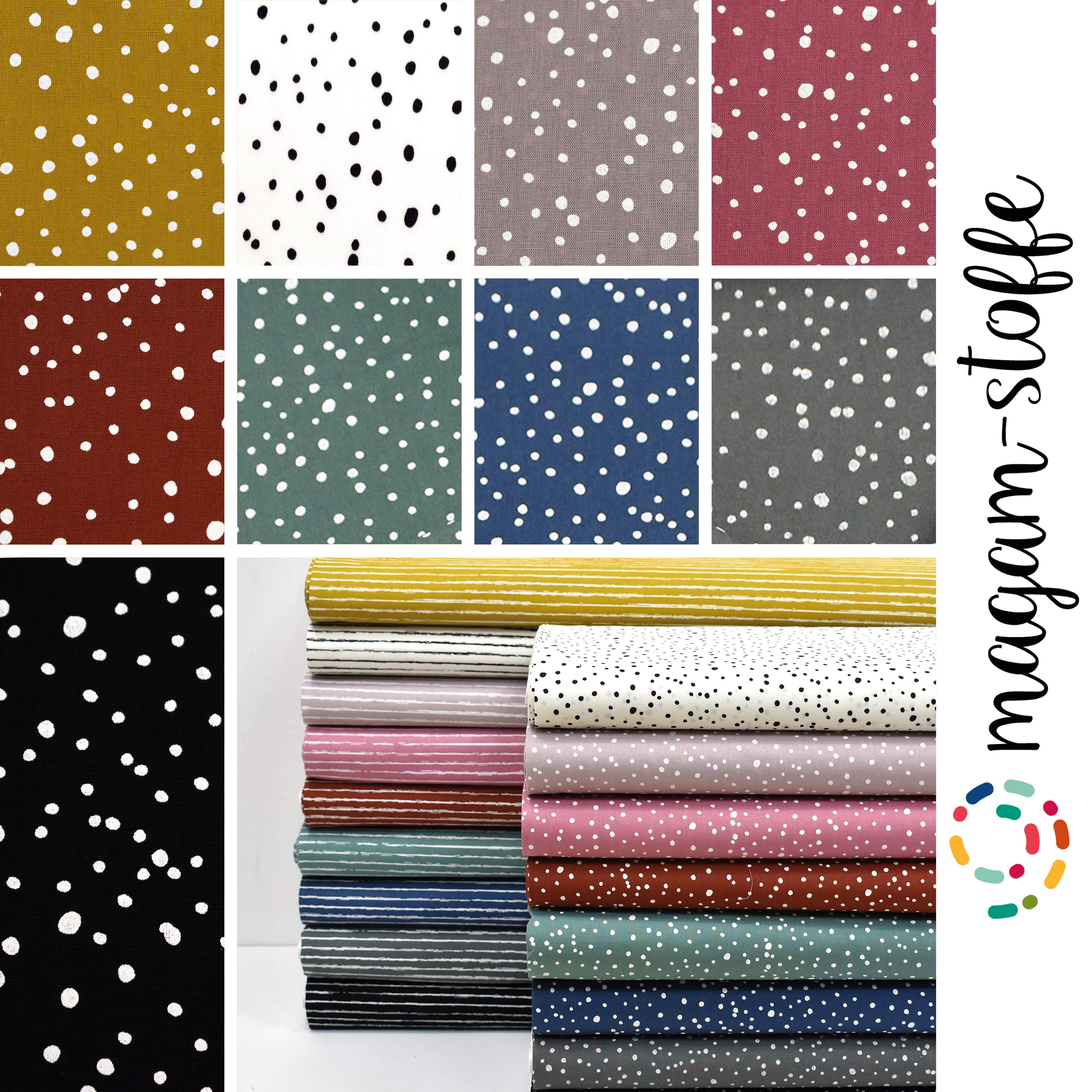 Farben: Weiß Gelb Rosa Rot Mint Blau Dunkelgrau Schwarz / Muster: Pünktchen kleine Punkte Dots