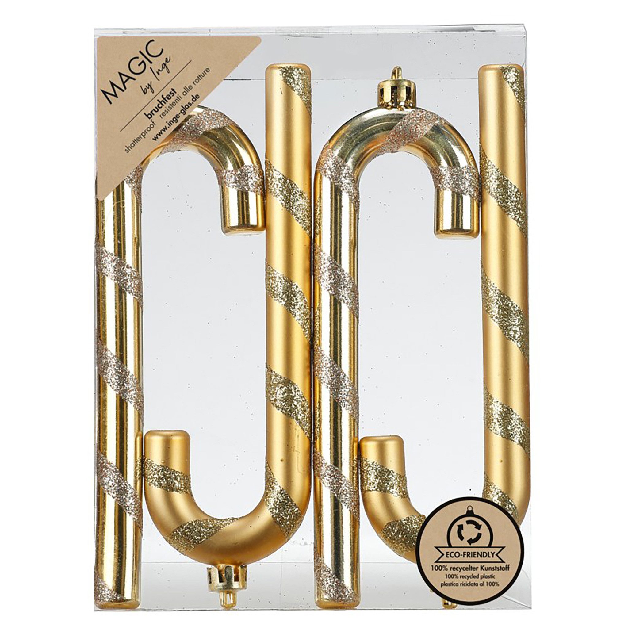 PRODUKT: Weihnachtskugeln Zuckerstangen - matt und glänzend mit Glitter / GRÖSSE (LxBxH): ca. 4,7 x 1,3 x 14 cm / MATERIAL: Kunststoff - Plastik / INHALT: 4 Stück / FARBTON: gold