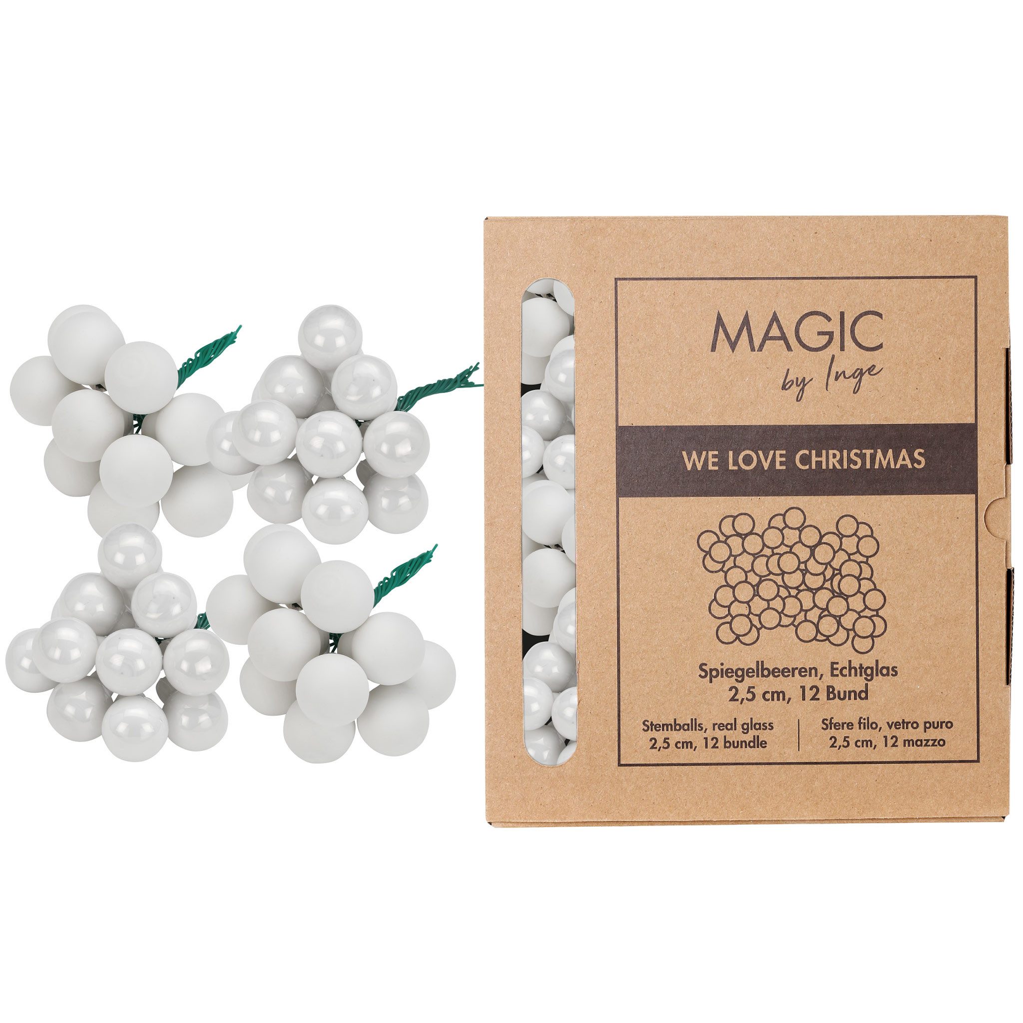 PRODUKT: Mini Christbaumkugeln am Draht / DURCHMESSER: ca. 2,5 cm / MATERIAL: Glas / INHALT: 12 Bündel mit je 12 Glaskugeln am Draht / FARBTON: schneeweiß - reinweiß