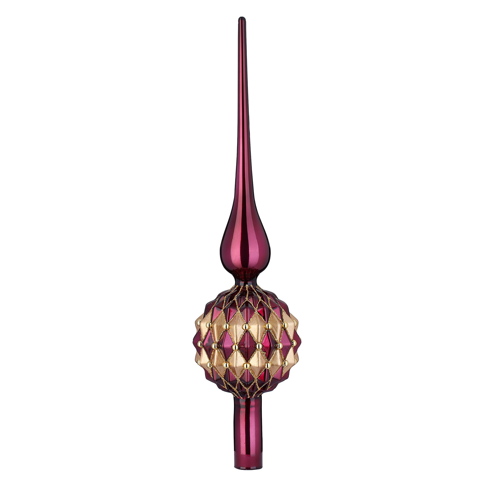 PRODUKT: Weihnachtsspitze / HÖHE: ca. 31 cm / DURCHMESSER: ca. 8 cm / MATERIAL: Glas / INHALT: 1 Spitze / FARBTON: dunkel weinrot - bordeaux - pflaume - beere - dunkelbordeaux