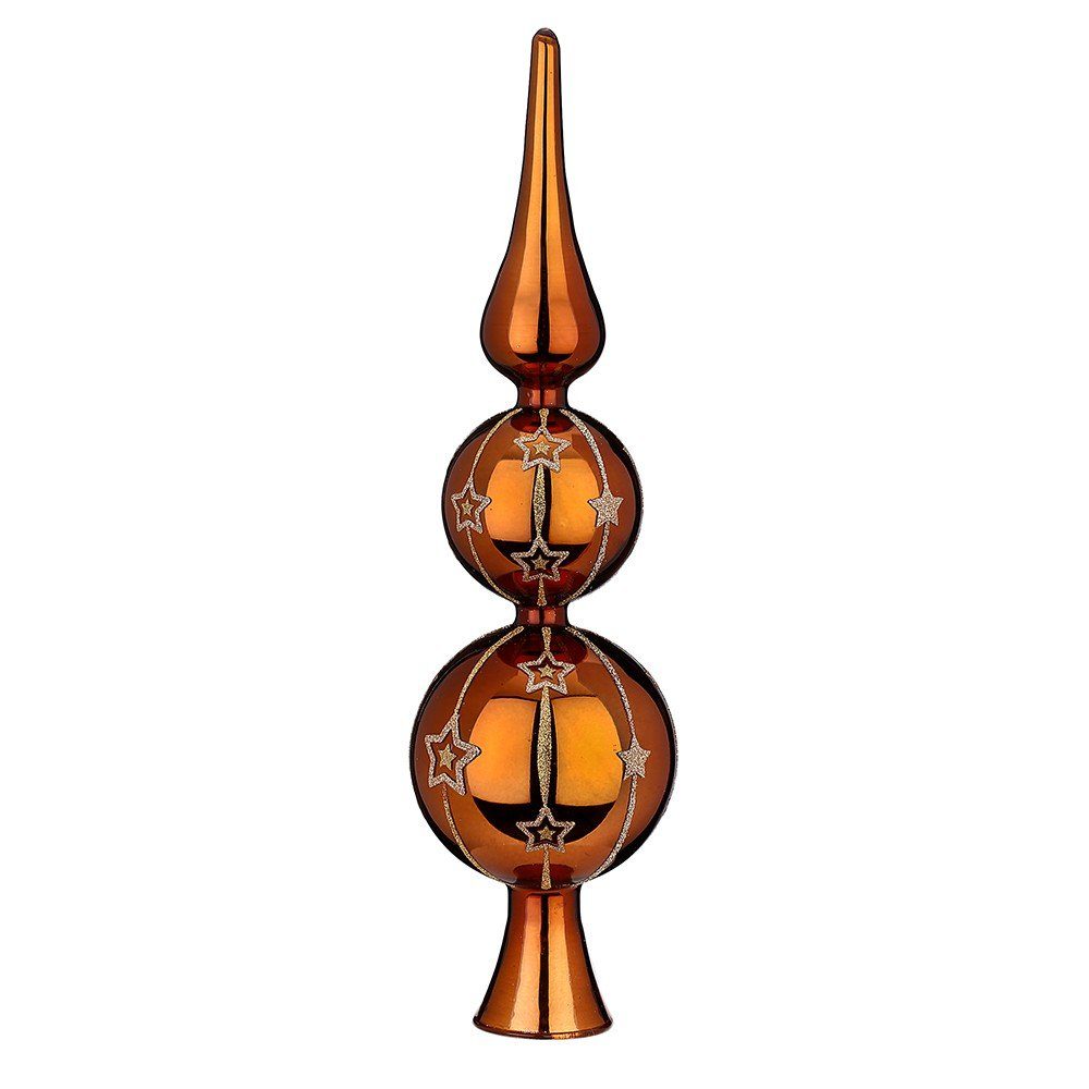 Einfarbige Baumspitze in traditioneller Form, mit Sternen Motiv - Ornamenten dekoriert
