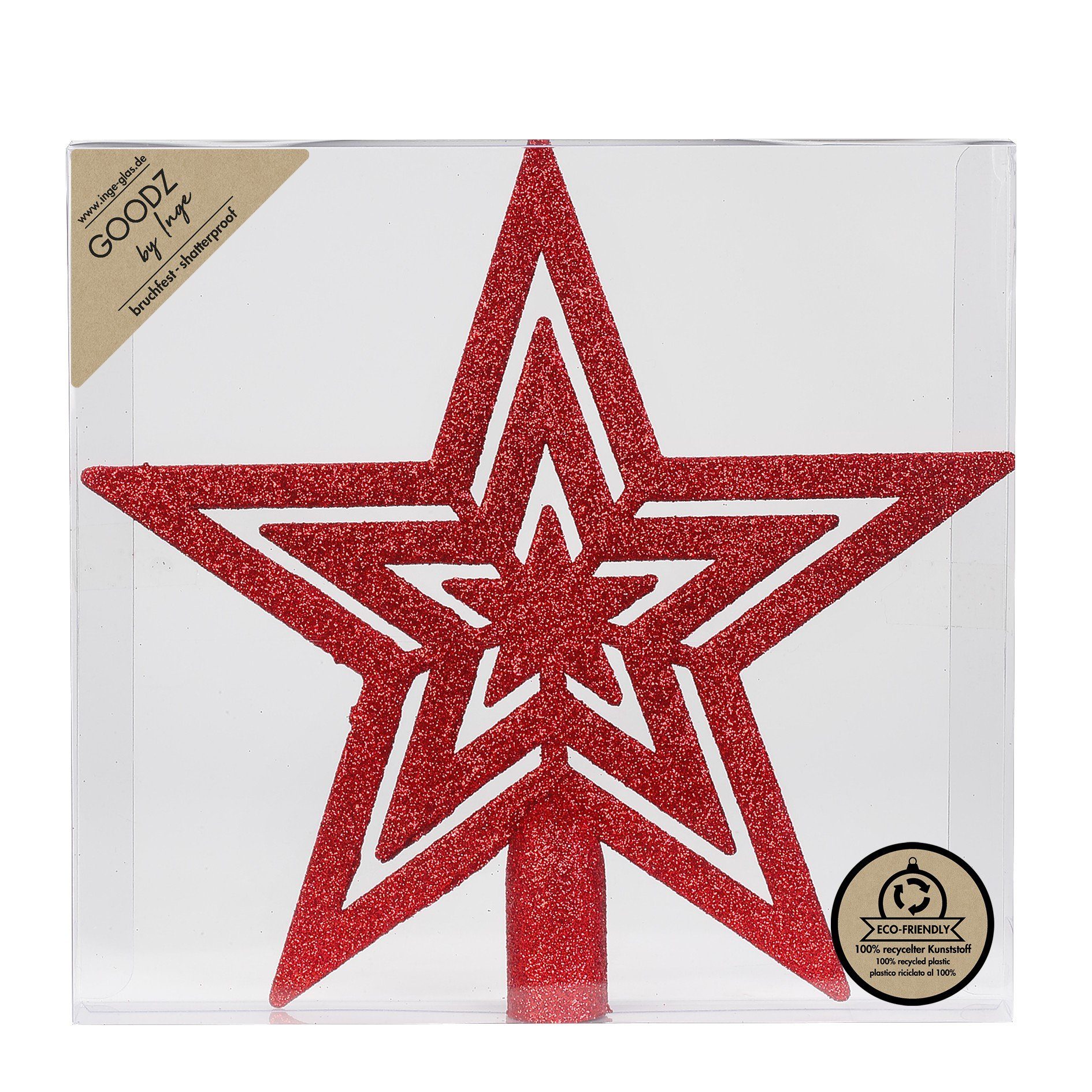 einfarbige Baumspitze in Stern - Form, bruchsicher, mit Glitzer