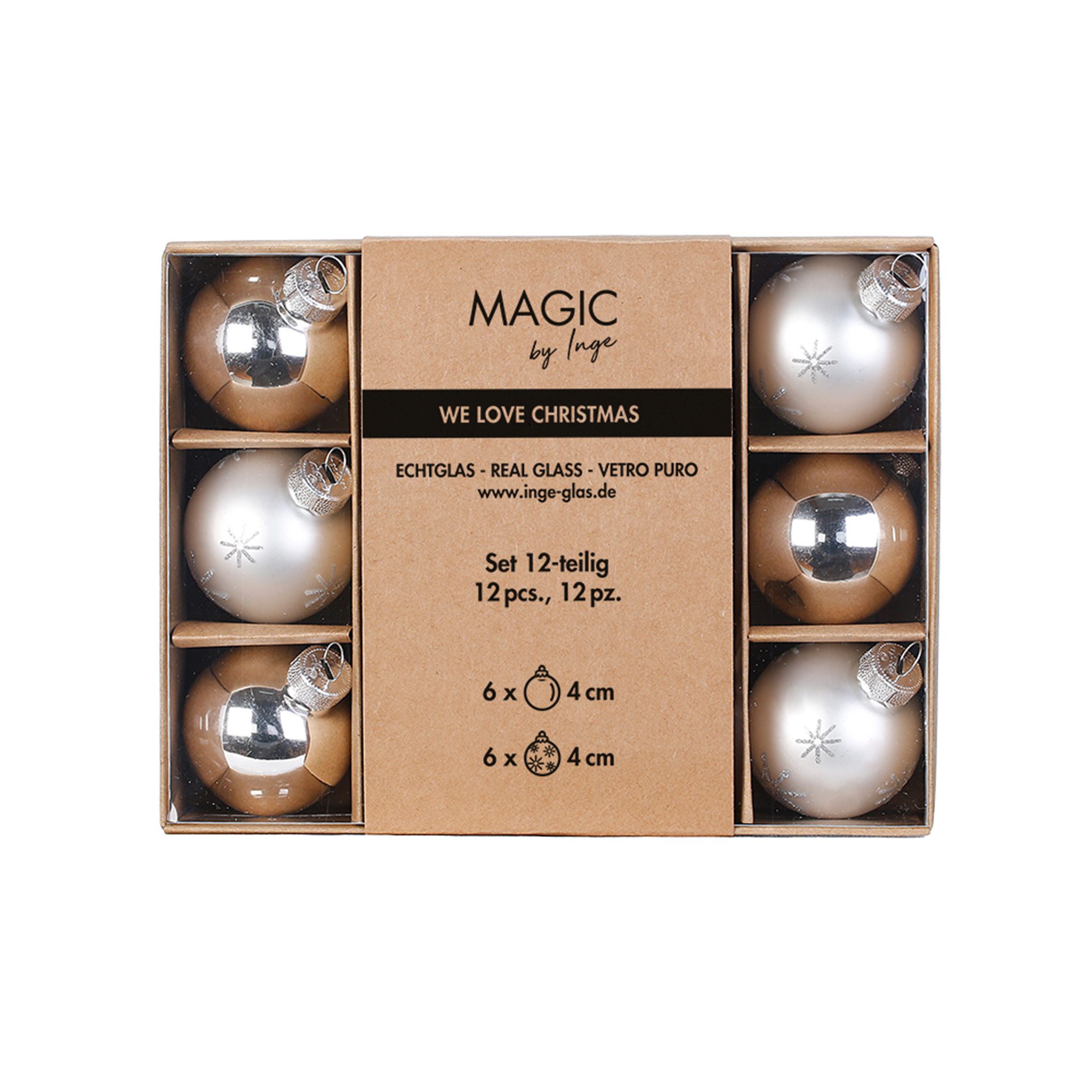 Christbaumkugeln / Weihnachtskugeln / Weihnachtsbaumkugeln Material: Glas - Durchmesser: ca. 4 cm - Packungsinhalt: 12 Weihnachtskugeln in Karton - Box - Farbton: silber - silberweiß Farbserie Frosty Silver: Wie glitzernder Raureif überzieht cooles Silber festliche Dekorationen und lässt diese erstrahlen. Elegant, glanzvoll und zeitlos begeistert das kühle Metall dabei nicht nur Minimalisten. Die Kombination von matt und glänzend sorgt für weitere Spannung. - Schöne Weihnachtsbaumkugeln aus echtem Glas, maschinelle Herstellung - In einer nachhaltigen Kartonbox mit Trennwänden, die als eine Aufbewahrungsbox verwendet werden kann Setzen Sie Ihren Weihnachtsbaum mit diesen hübschen Weihnachtskugeln in Szene. Der klassische Christbaumschmuck lässt sich beliebig mit anderen Weihnachtskugeln kombinieren. Doch nicht nur als Weihnachtsbaumschmuck eignen sich die Christbaumkugeln, sondern auch als Dekokugeln. Sie ergänzen Ihre Weihnachtsdekoration oder die Festtagstafel. Motiv & Muster: Sterne, Schneeflocken, Glitzer - Stil: Elegant, stilvoll, glänzend, matt - Farbgruppe: silber - silberfarben Die Farben können aufgrund von unterschiedlichen Monitor Einstellungen vom Foto leicht abweichen