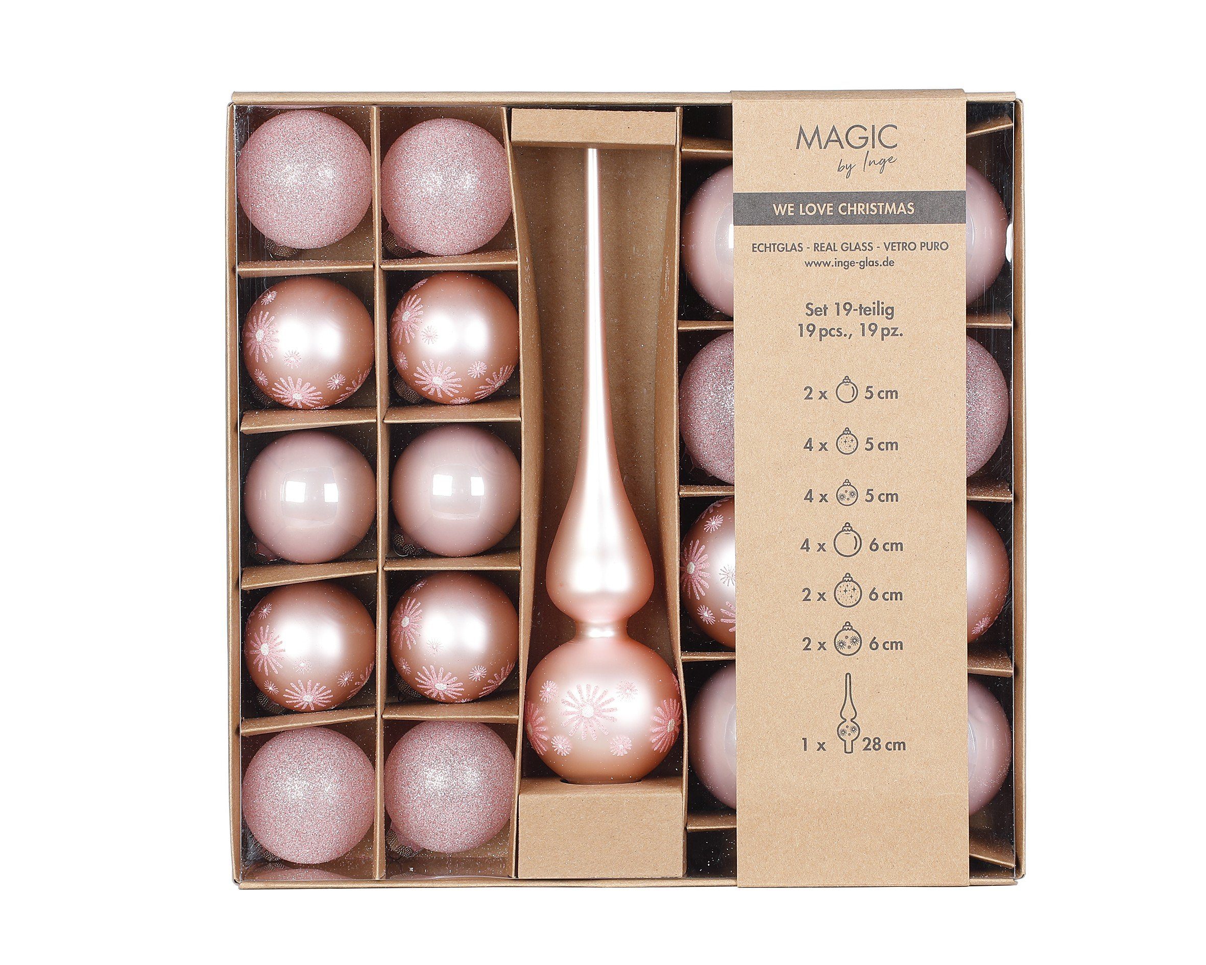 Packungsinhalt: Set aus 1 x Christbaumspitze ca. 28 cm, Weihnachtskugeln 8 x ca. 6 cm, 10 x ca. 5 cm in Karton - Box