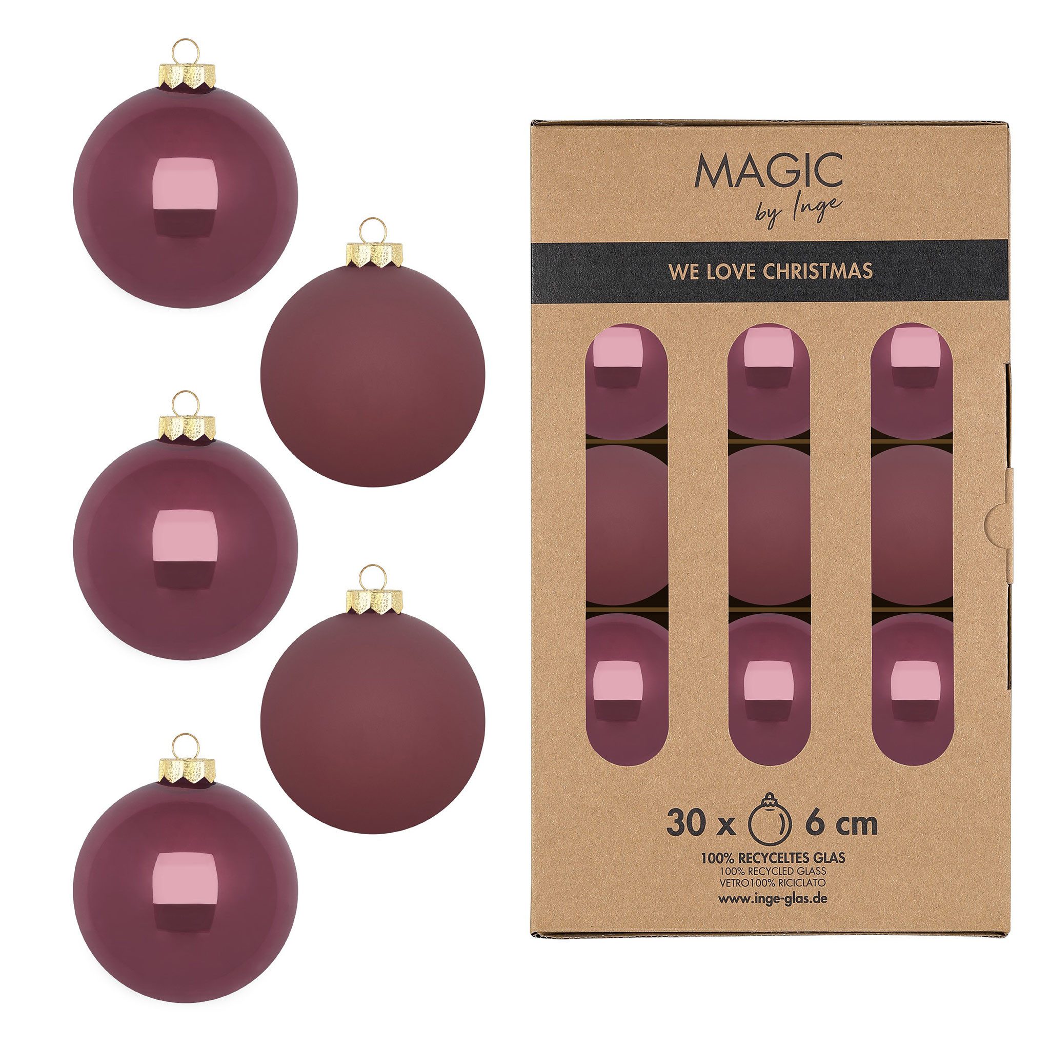PRODUKT: Weihnachtskugeln / DURCHMESSER: ca. 6 cm / MATERIAL: Glas / INHALT: 30 Kugeln / FARBTON: altrosa - staubrosa - vintage pink