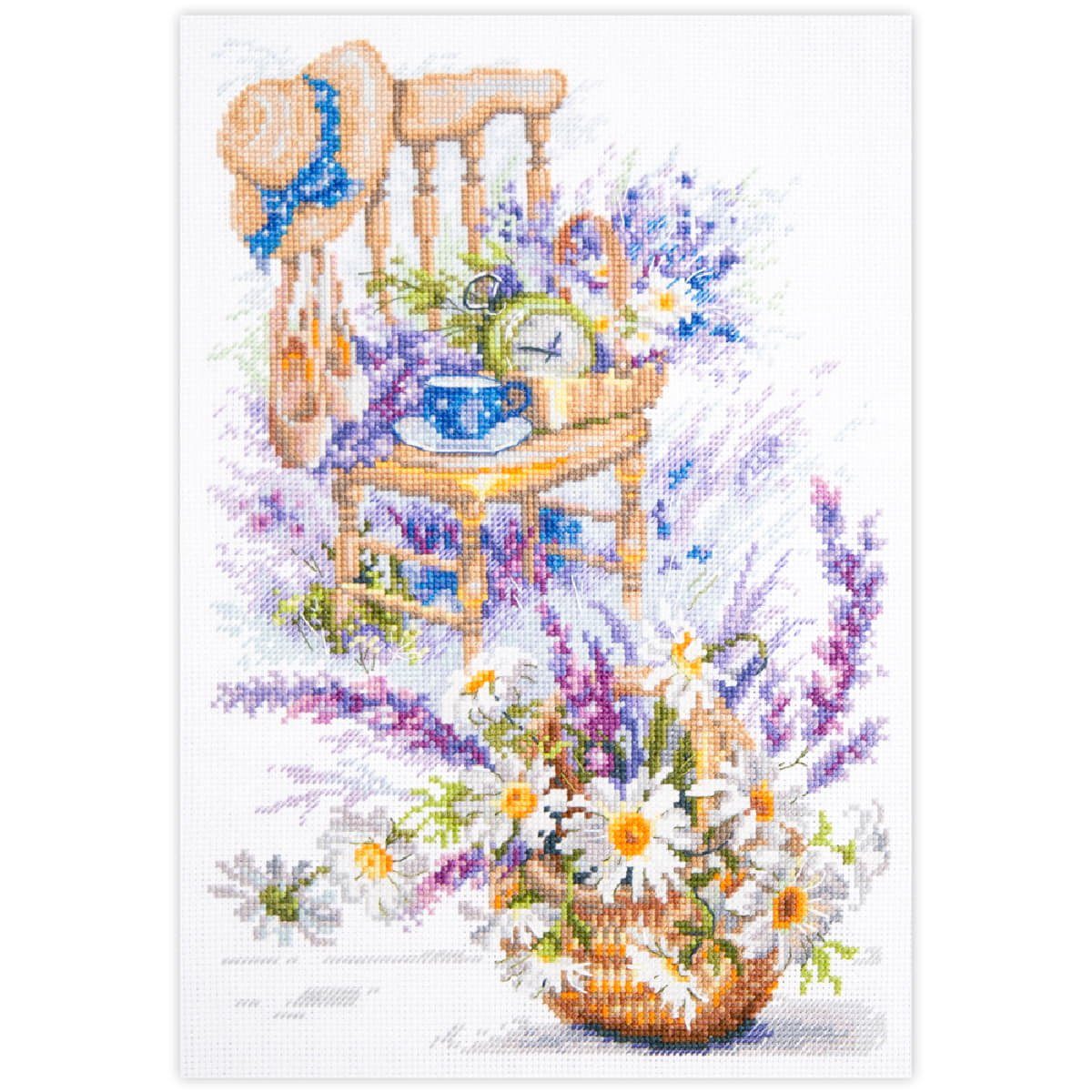 Inhalt: Handarbeitsstoff Zweigart Aida 16, (100% Baumwolle), Stickgarn Gamma Mouline (100% Baumwolle), Zählschema, Nadel, Foto, Anleitung in DE, EN, RU,