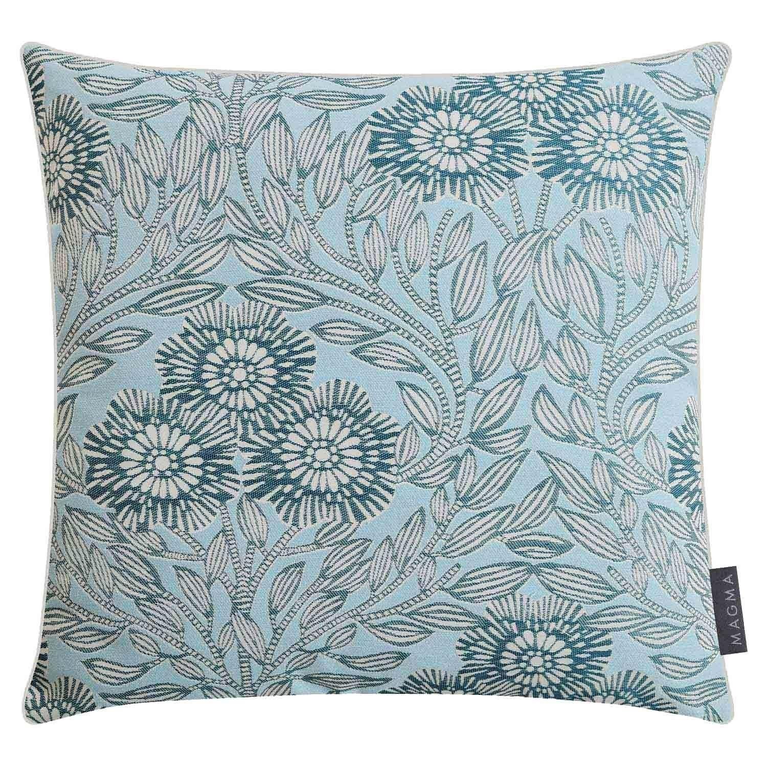 Die Kissenhülle von Magma überzeugt durch ihr stilvolles Design in Blau und Weiß, das durch Blumenmotive elegant ergänzt wird. Gefertigt aus Baumwolle und Polyester, bietet die Hülle sowohl Komfort als auch eine ansprechende Optik. Ein praktischer Reißverschluss ermöglicht einfaches Beziehen, und der Keder verleiht dem Kissen eine raffinierte Note. Mit den Maßen von 50 x 50 cm passt sie perfekt auf Standard-Kissen und setzt einen eleganten Akzent in jedem Wohnraum.
