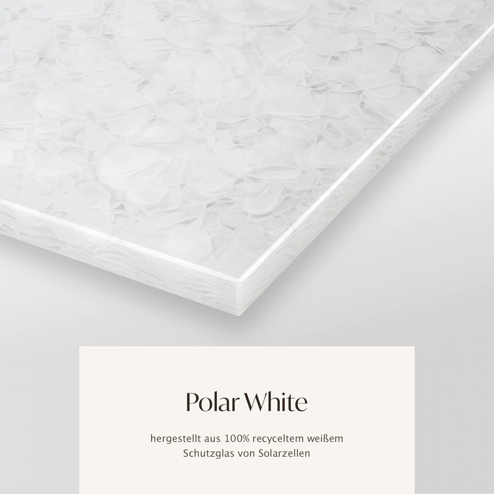 Materialhinweis | MAGNA Glaskeramik ist ein weltweit einzigartiges Produkt, das nur wir herstellen. In einem aufwendigen und mehrtätigen Schmelzverfahren gelingt es uns, aus recycelten Glasscherben wieder hochwertige und langlebige Produkte herzustellen. Unsere schollenartige Glaskeramik fügt also die einzelnen Glasscherben wieder zu einer Tischplatte zusammen. Bei Lichteinfall werden diesen einzelne Glasscherben in unnachahmlicher Weise wieder sichtbar. |