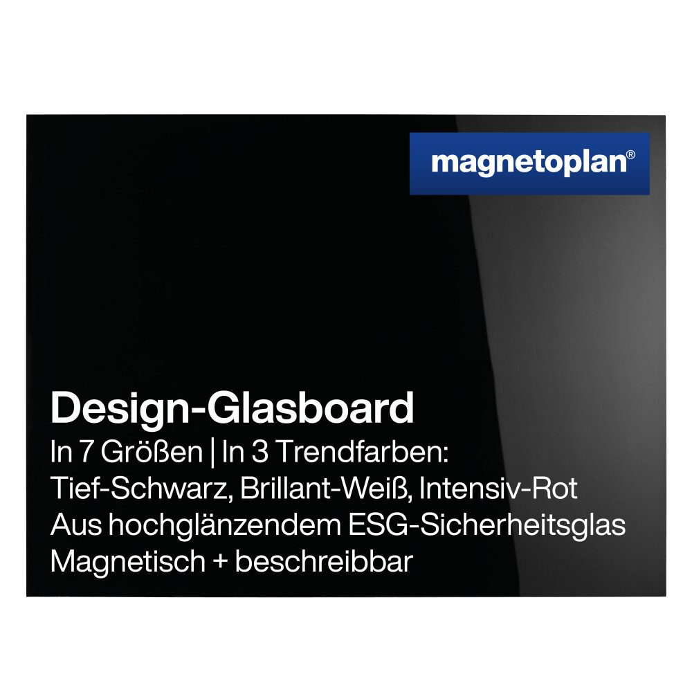 Entdecken Sie das magnetoplan Design-Glasboard in tiefem Schwarz, eine moderne und elegante Alternative zu herkömmlichen Whiteboards. Mit großzügigen Abmessungen von 1200 x 900 mm bietet dieses Glasboard ausreichend Platz für Ihre Ideen, Notizen und Fotos. Dank seiner magnetischen und beschreibbaren Oberfläche ist es vielseitig einsetzbar und überzeugt durch sein stilvolles Erscheinungsbild.