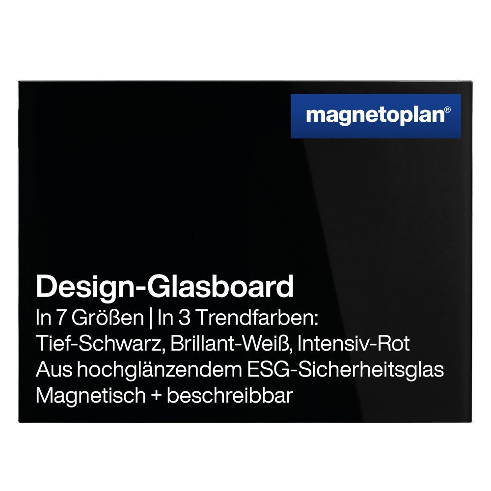 Entdecken Sie das magnetoplan Design-Glasboard in tiefem Schwarz, eine moderne und elegante Alternative zu herkömmlichen Whiteboards. Mit großzügigen Abmessungen von 800 x 600 mm bietet dieses Glasboard ausreichend Platz für Ihre Ideen, Notizen und Fotos. Dank seiner magnetischen und beschreibbaren Oberfläche ist es vielseitig einsetzbar und überzeugt durch sein stilvolles Erscheinungsbild.