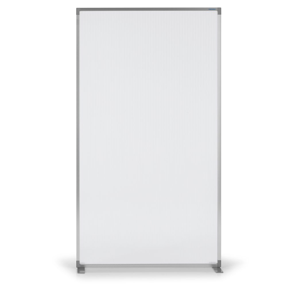 Der Magnetoplan Raumteiler halbtransparent ist ein preisgünstiges Trennwand-System für eine flexible und kommunikative Raumgestaltung mit halbtransparentem Sichtschutz. Er verfügt über eine Oberfläche aus besonders lichtdurchlässigem Polycarbonat mit einer Stärke von 7,5 mm und ist sowohl mit als auch ohne magnetowand-Leiste erhältlich. Mit seinem stabilen Aluminium-Rahmen und den lichtgrau lackierten, T-förmigen Standfüßen aus Metall bietet er eine hohe Standfestigkeit.