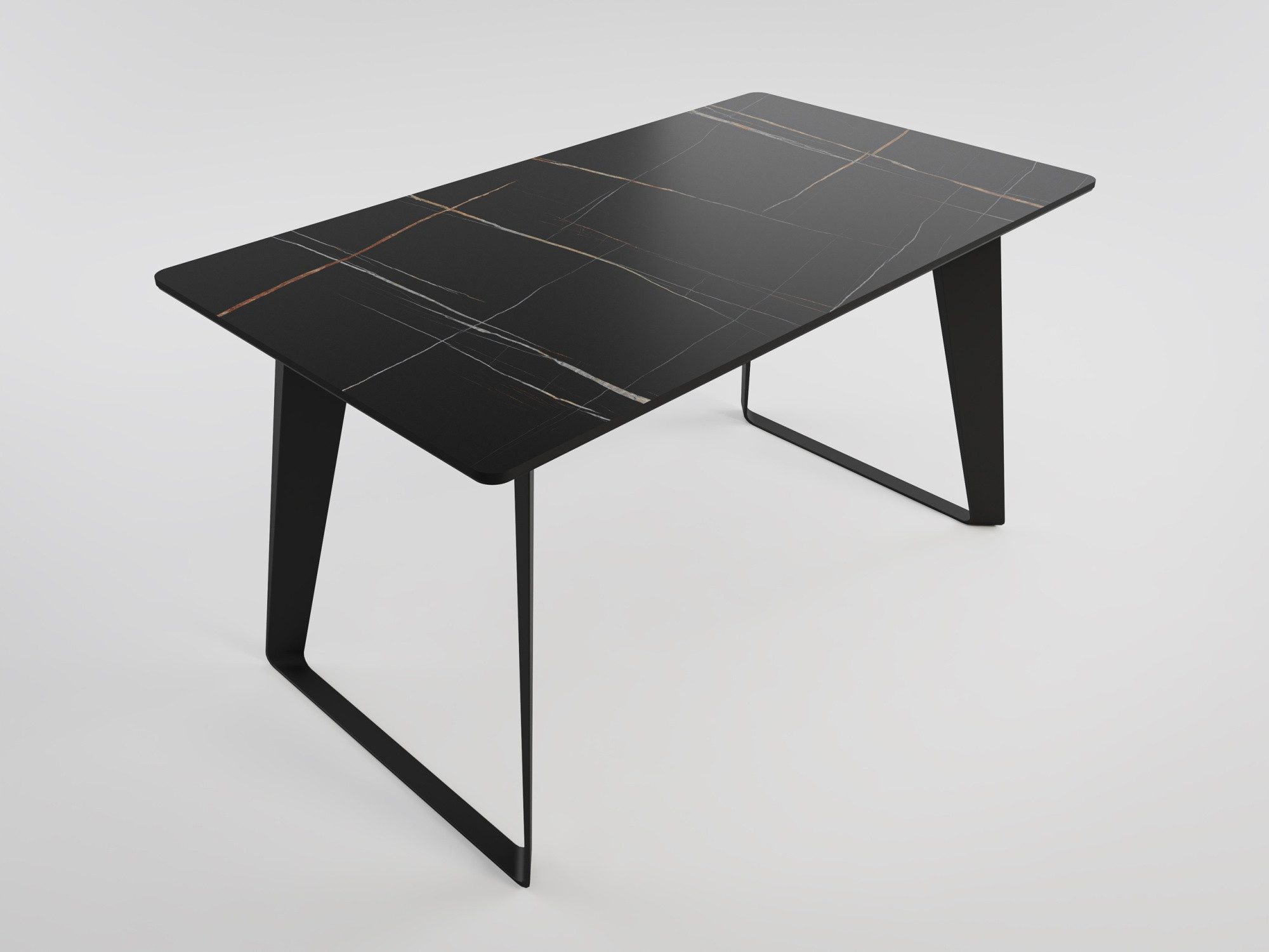 Die Tischplatte besteht aus einer 18mm dicken MDF-Platte mit einer 12mm Keramikbeschichtung.