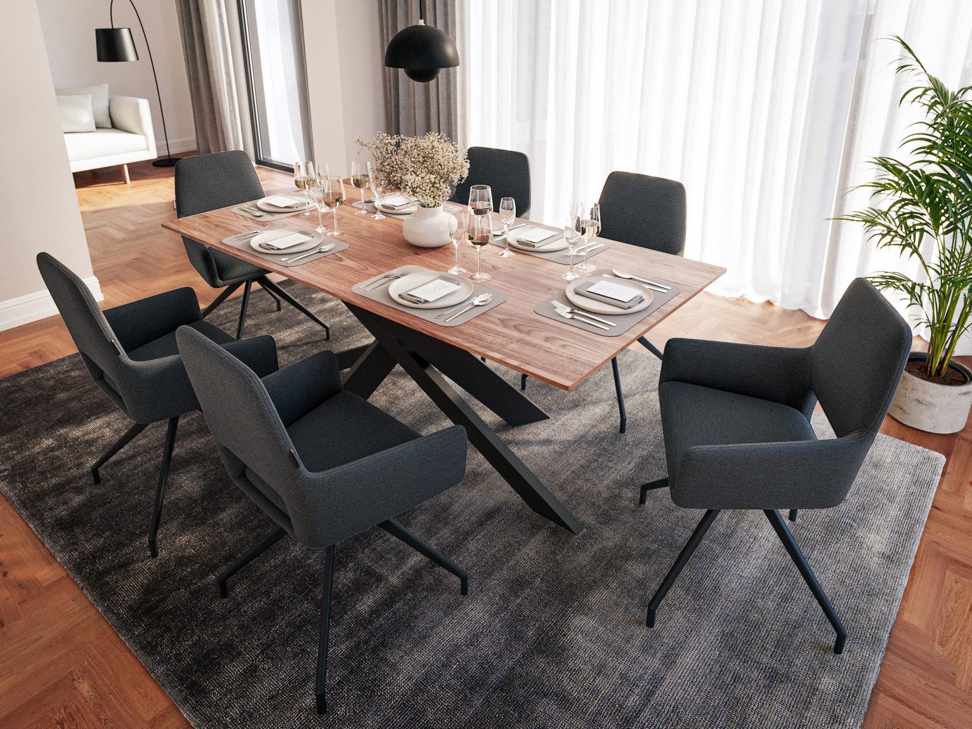 Esszimmerstühle mit Stoffbezügen bestechen durch ihre zeitlose Eleganz. Das moderne Aussehen in Kombination mit der angenehmen Haptik werten Ihr Esszimmer auf und sorgen für eine gemütliche und angenehme Atmosphäre, in der man lange verweilen möchte. Dank des Sitzkomforts verführt der Esszimmerstuhl zu langen Gesprächen, ausgiebigen Essen oder geselligen Runden.