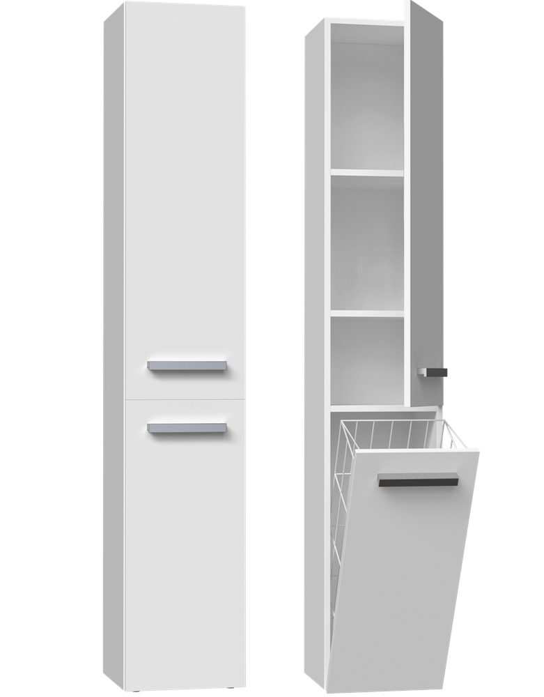 Der Badezimmerschrank NEL IV ist die perfekte Lösung für mehr Ordnung im Bad – ideal für Handtücher, Kosmetik und Badutensilien. Dank seines schlanken Designs benötigt er wenig Platz, bietet jedoch überraschend viel Stauraum.