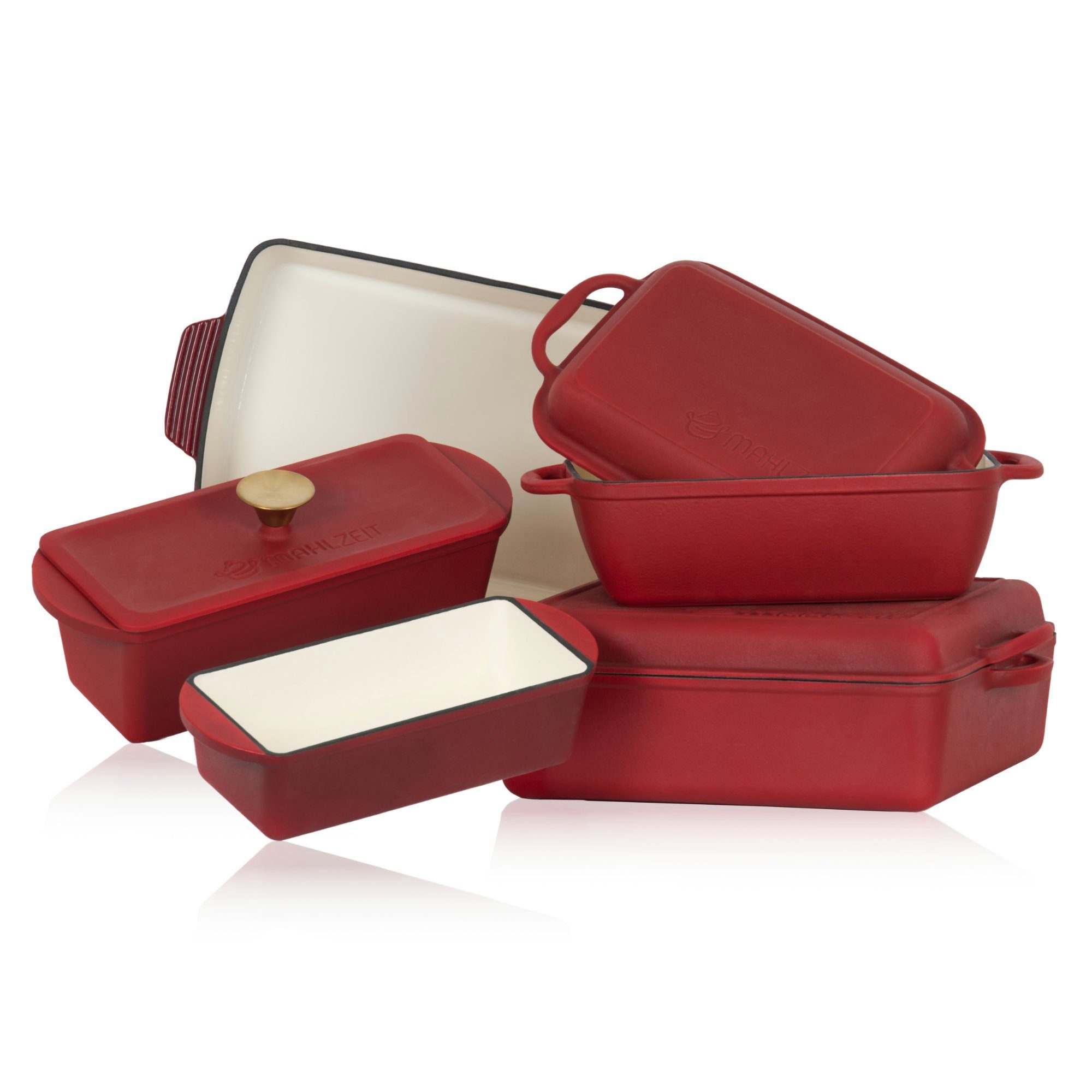 Mahlzeit Bräterset 5-teilig, Dark Cherry, mit Gusseisen Bräter und Auflaufform
