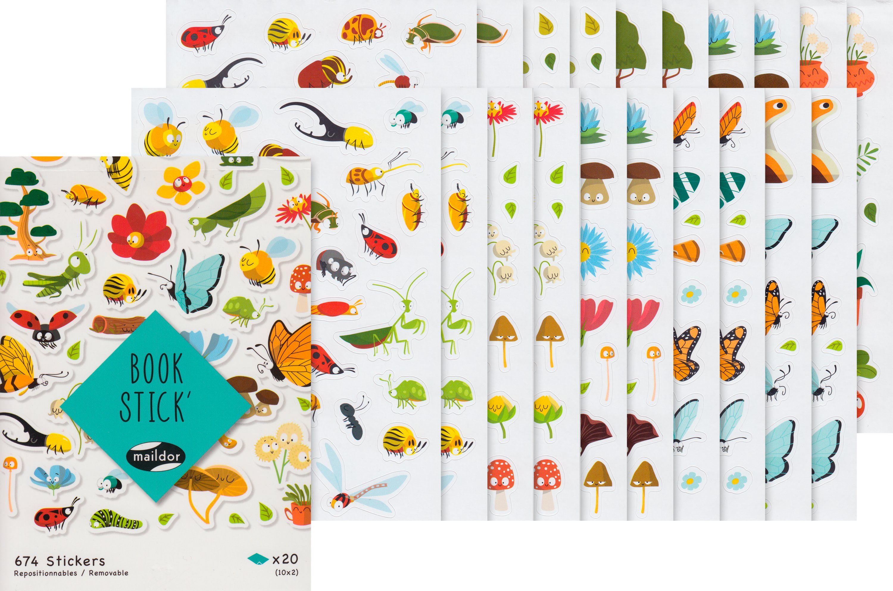 Niedliches Sticker-Buch 'Happy Nature' mit ca. 674 Stickern auf 20 Bögen. Jeder Sickerbogen ist 2-mal enthalten. Die Sticker haben eine Motivgröße von ca. 0,8 x 0,6 bis 2,8 x 3,3 cm. Mit diesen Stickern können Schachteln, Geschenkverpackungen, Karten, Scrapbooks und vieles mehr wunderbar aufgepeppt oder verziert werden.