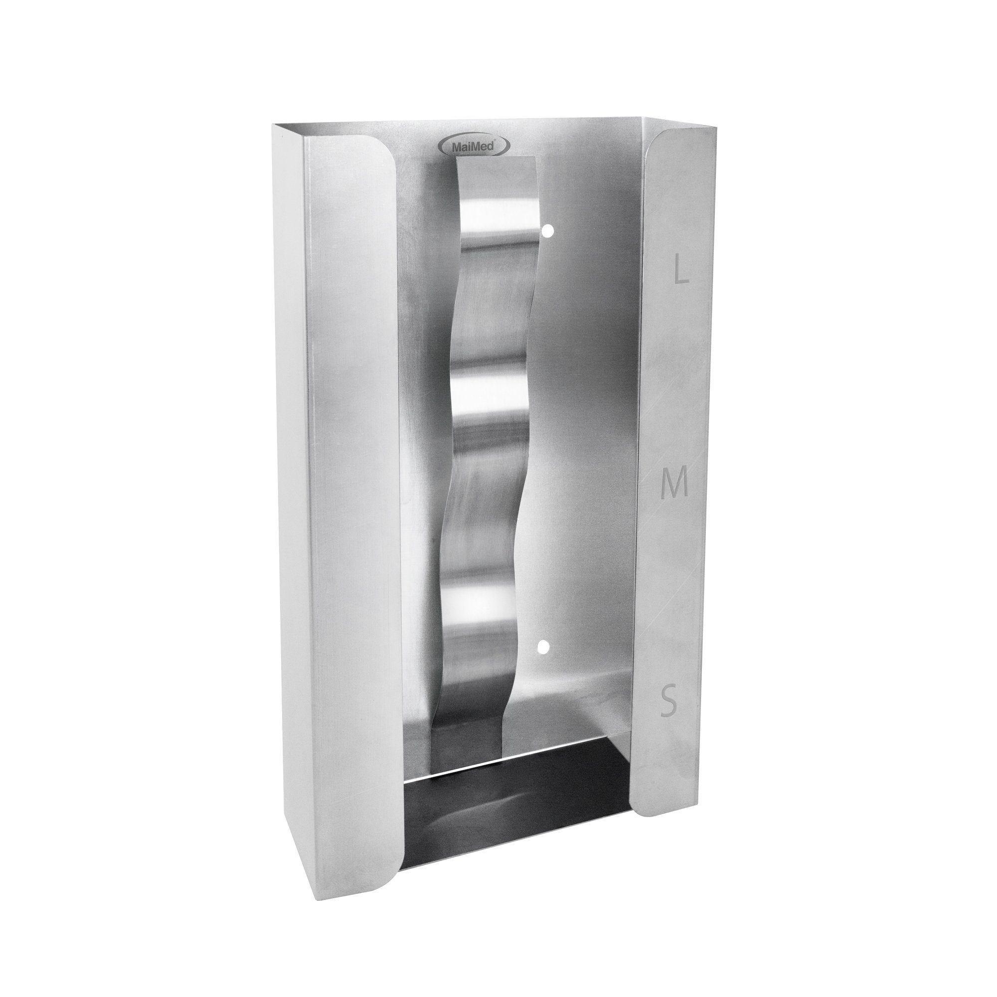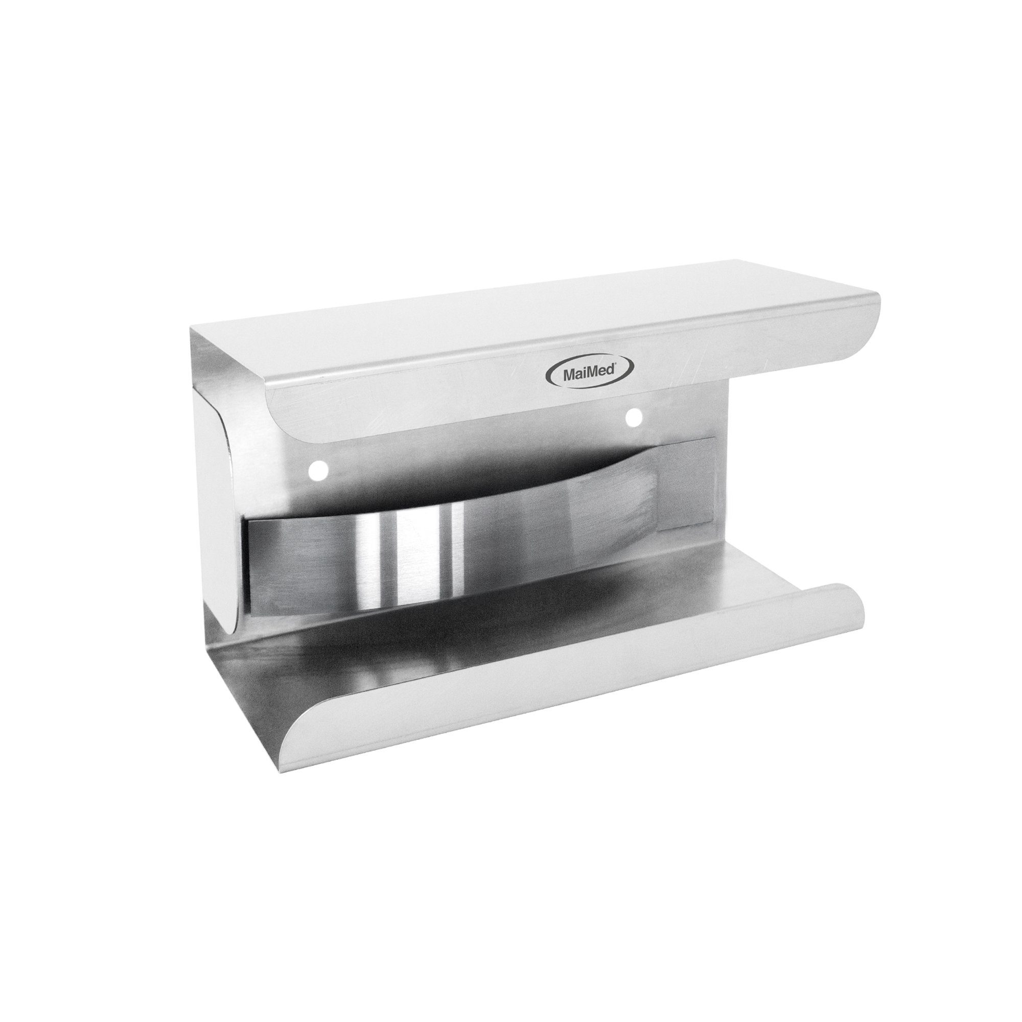 Der MaiMed Handschuhspender mit Feder besteht aus Edelstahl und ist ein Wandhalter zur Aufbewahrung von Handschuhboxen und zur leichten Entnahme von Handschuhen. Der Handschuhspender ist in 2 Größen erhältlich: für 1-fache oder 3-fache Befüllung. Dank der integrierten Feder können verschiedene Boxengrößen sicher verstaut werden.