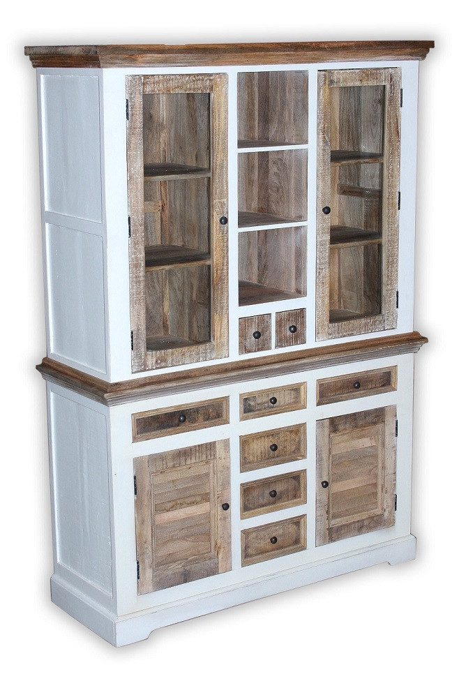 Unser Wohn/Esszimmerprogramm „Nizza“ verbindet aufgrund der vorhandenen und gewollten Gebrauchsspuren, sowie den Lamellentüren, Landhausstil mit dem Vintage-Look. Die Möbel bestehen alle aus massivem Mangoholz das relativ leicht ist aber trotzdem eine gute Dichte besitzt. Daher gilt dieses Holz als sehr stabil und langlebig. Die Korpus Teile der Möbel sind weiß lackiert und alle Lamellentüren, Schubkästen, Sitzflächen oder Auflageflächen sind Naturbelassen. Somit kommt das wunderschöne Mangoholz mit der einzigartigen Maserung richtig zur Geltung. Schwarz lackierte Metallgriffe geben den Möbeln einen Antik Vintage Look. Все Artikel dieser Serie, bis auf Tisch und Sitzbank, erhalten sie komplett montiert geliefert. Richten sie sich mit dem Programm Nizza geschmackvoll ein und lassen sie ein Stück Süd-Französisches Flair in ihr Zuhause.