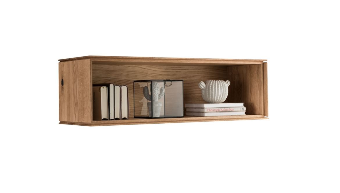 Dabei ist das Hängeelement aus Massivholz, für das natürliche Wildeiche verwendet wurde, die sich mit vielerlei Möbeln aus den unterschiedlichsten Stilen sehr harmonisch kombinieren lässt, keineswegs darauf beschränkt, Platz für Dekorationen anzubieten. Auch weil sich das Hängeelement senkrecht wie waagrecht montieren lässt, sind den Einsatzmöglichkeiten dieses hochwertigen Möbelstücks keinerlei Grenzen gesetzt.
