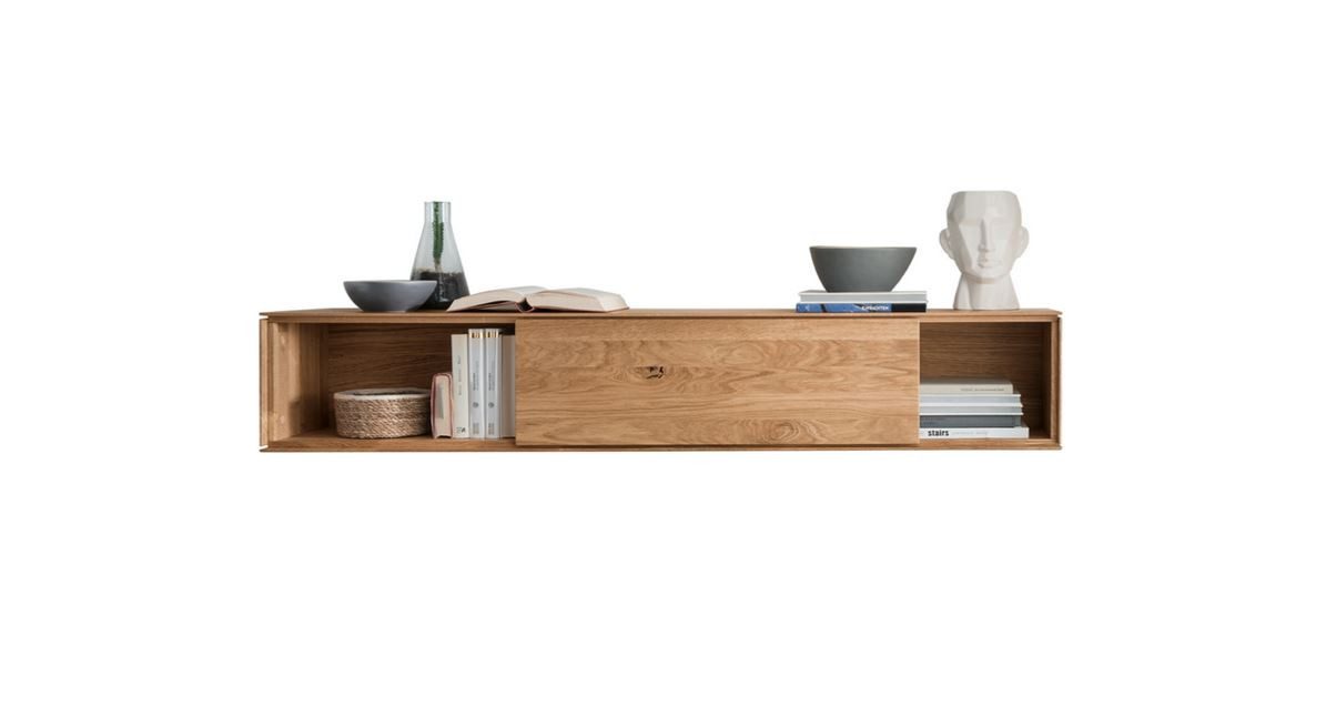 Der parkettverleimte Korpus des Hängeelements aus Massivholz hat nämlich eine spektakuläre Schiebetür, durch die auch ein sehr offenes Raumbild mit zusätzlicher Tiefe erzeugt werden kann. Die Hochwertigkeit ist derweil durch die Verwendung von massiv verarbeiteter Wildeiche gegeben, die ein besonders hohes Maß an Robustheit und Widerstandsfähigkeit aufweist. Durch die natürliche Farbe beißt sich das exklusive Hängeelement aus Massivholz überdies auch nicht mit anderen Möbeln. Das liegt auch daran, dass dieses Möbelstück dem modernen Einrichtungsstil zuordenbar ist, der durch seine Flexibilität und Kombinierbarkeit besticht.