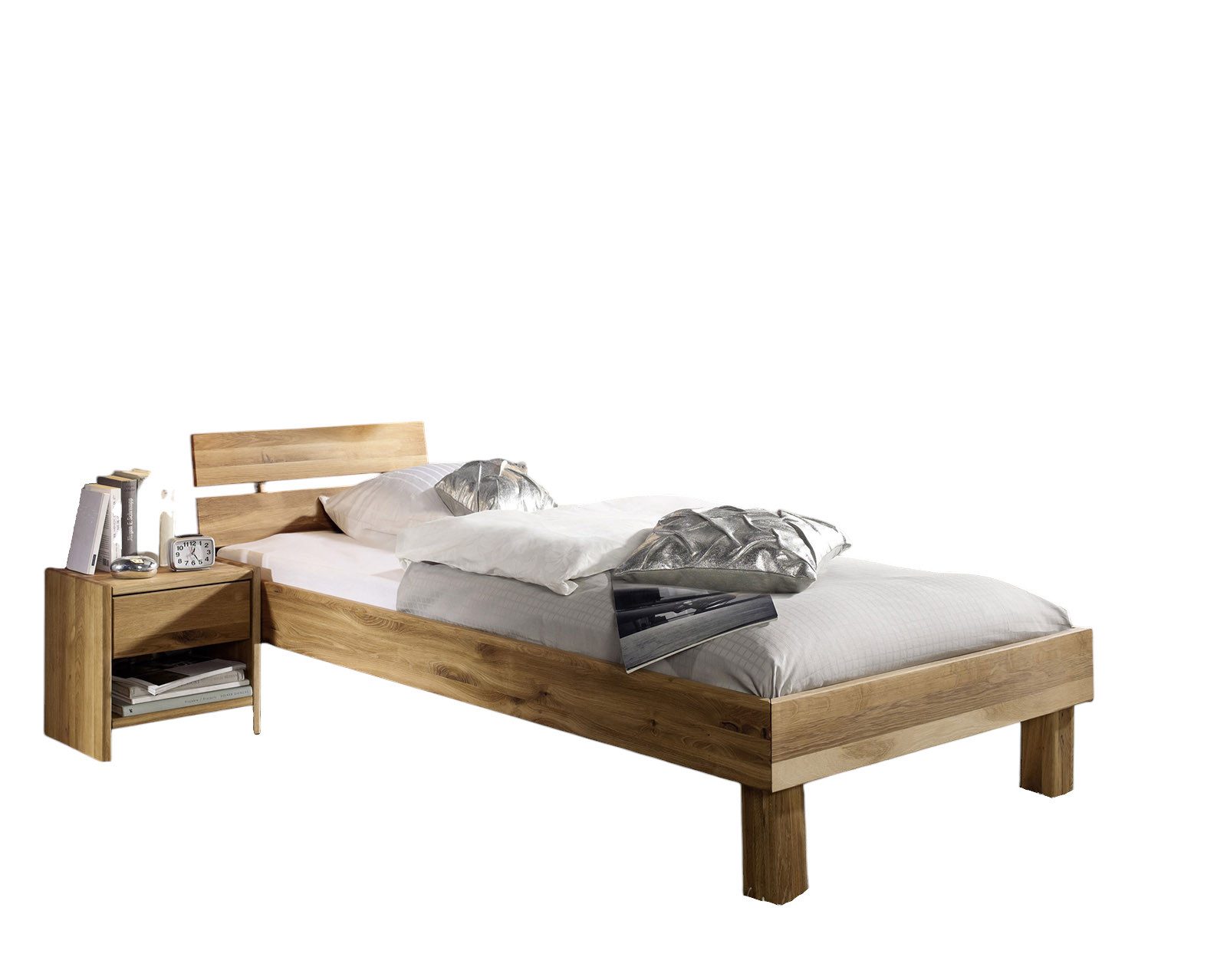 Dieses moderne Jugendbett "Lewis" aus massiver,geölter Wildeiche, besticht durch seine gradlinige und jugendliche Form. Ein Blickfang für jedes Kinder bzw. Jugendzimmer. Das Holz ist leicht geölt, also sehr Pflegeleicht, und kann jederzeit neu nachgeölt werden. Die Liegefläche ist 90x200, das Außenmaß ca.B 95cm L 205cm. Durch das geteilte Kopfteil wirkt das Bett noch filigraner und unterstreicht seine moderne Form. Das Kopfteil ist ca.73cm hoch. Die massiven Füße sind ca.8x8cm stark und halten das Bettgestell zu jeder Zeit stabil im Rahmen. Das Bett wird zerlegt geliefert, eine ausführliche Montageanleitung liegt dem Paket bei.