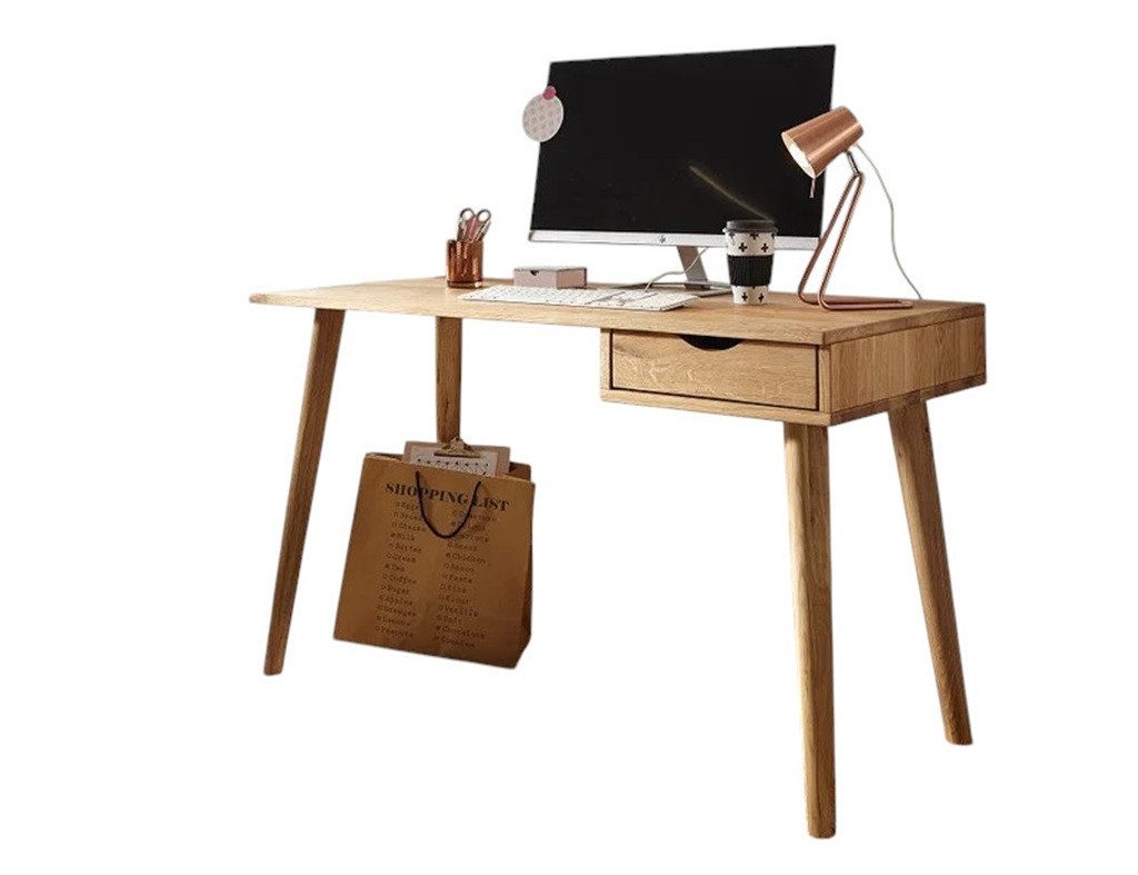 Funktionalität wurde hier mit einem ansprechenden Design kombiniert. Das Ergebnis, aus massiver Wildeiche lässt sich sehen! Ein Blickfang ist dieser sehr gut ausgearbeitete Schreib- bzw. Computertisch allemal. Standfestigkeit garantiert die massive Eiche und ein Schubkasten sorgt für die nötige Ordnung an deinem Arbeitsplatz.