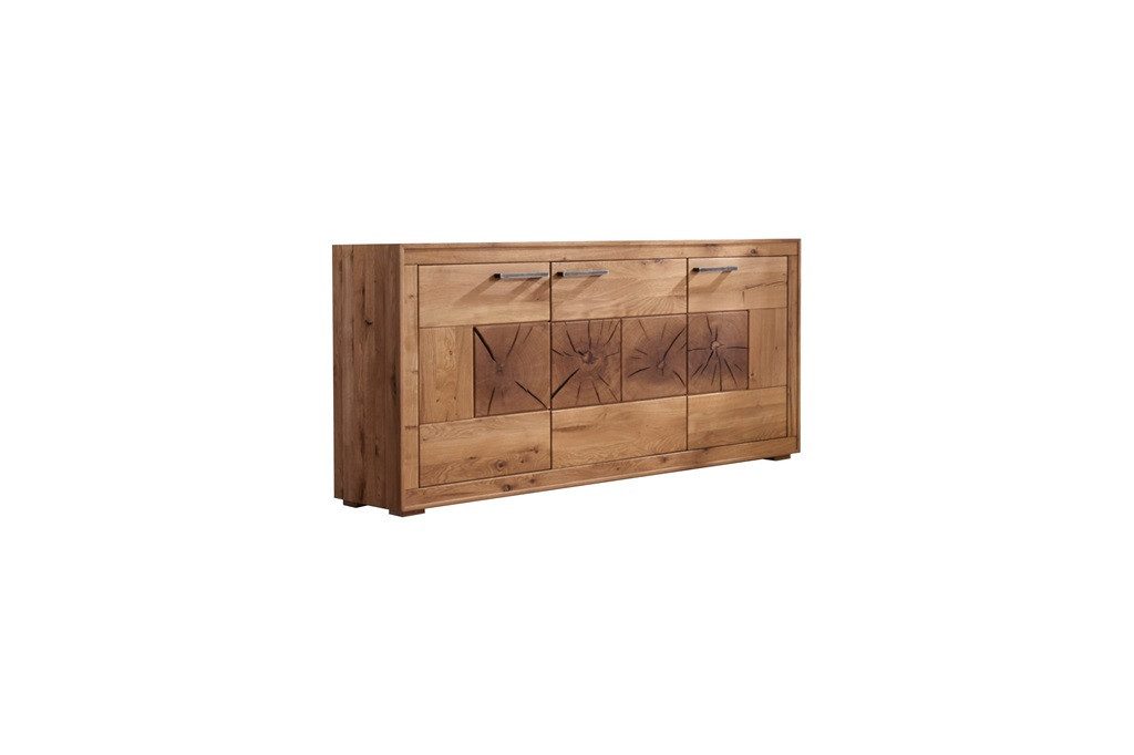 Das Sideboard der Serie Danzig ist ein absolut perfektes Möbelstück! Es bietet überzeugend viel Stauraum und Platz um Dinge sicher zu bewahren. Drei Holztüren die sich durch metallene Griffe öffnen lassen, sind dabei ein absolutes Highlight da sie mit Hirnholzelementen versehen sind. Dahinterliegend befinden sich jeweils drei Holzeinlegeböden die für jede Menge blickdichten Stauraum sorgen. Die Oberfläche des Holzes fühlt sich sehr weich an, da das Holz bei der Verarbeitung geölt wurde. Somit ist dieses Möbelstück nicht nur höchst Funktional sondern auch sehr Pflegeleicht.