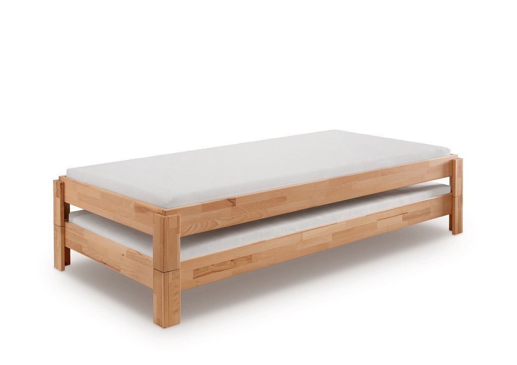 Die Stapelbarkeit ermöglicht eine flexible Nutzung und Aufbewahrung. Die maximale Matratzenhöhe inklusive Lattenrost beträgt 20 cm. Beachte, dass Matratzen und Lattenroste nicht im Lieferumfang enthalten sind. Auf Wunsch ist das Set auch in Buche weiß lackiert gegen Aufpreis erhältlich.