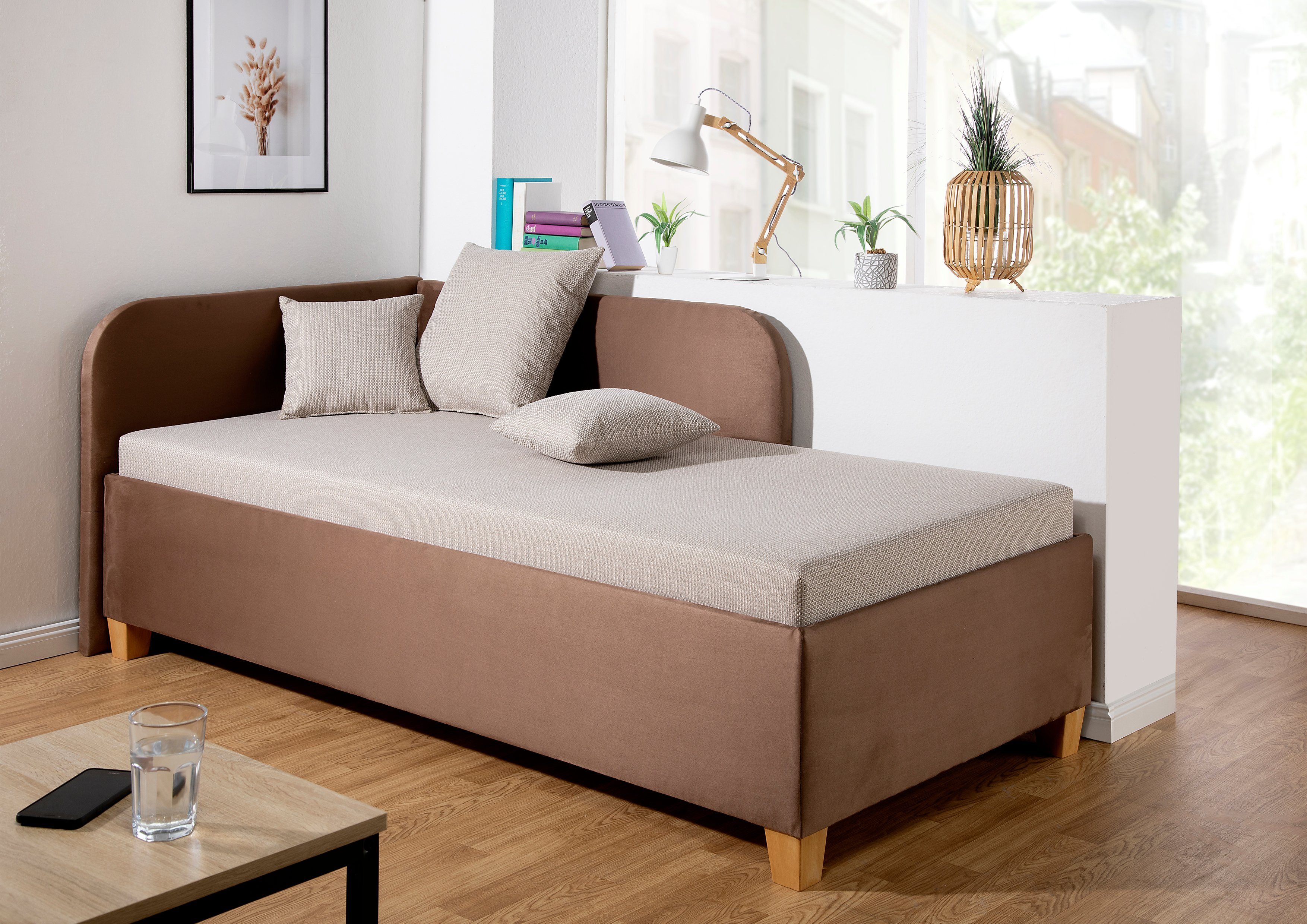 Wissenswertes | Bonnell-Federkernmatratze: Lattenrost mit 13 Federholzleisten, Kopfteil vierfach und Fußteil einfach verstellbar Bonnell-Federkernmatratze: geräumiger Bettkasten, vom Fußteil aus zu öffnen Federkern-Festpolster: geräumiger Bettkasten, von der Längsseite aus zu öffnen |