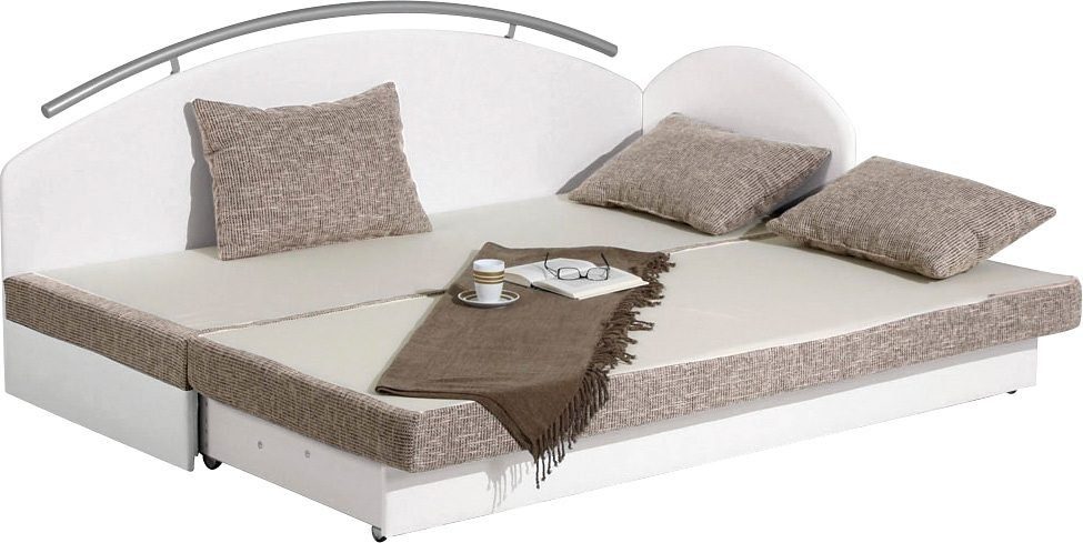 Wissenswertes | In moderner Optik. In 3 Farben. Mit Seitenteil und Metall-Reling am Rücken. Das Seitenteil ist wahlweise rechts oder links montierbar. Bezug aus Kunstleder, Liegefläche mit Strukturstoff aus 70% Polyester und 30% Polyacryl. Doppelliege mit Schlaffunktion. Mit Schaummatratze in Härtegrad 2 (bis ca. 80 kg) oder Komfortschaummatratze in Härtegrad 3 (bis ca. 100 kg). Bettkasten mit Klappe. Auf den ausgezogenen Bettkasten wird die Doppelmatratze aufgelegt. Liegehöhe 42 cm, ausgeklappt 30 cm. Liegefläche 80/193 cm (Außenmaße 84/198 cm) oder ausgeklappt 160/193 cm. Rückenteilhöhe inkl. Stange 81 cm, Seitenteilhöhe 70 cm. Всеs ca.-Maße. Mit Aufbauanleitung. Ohne Kissen. |