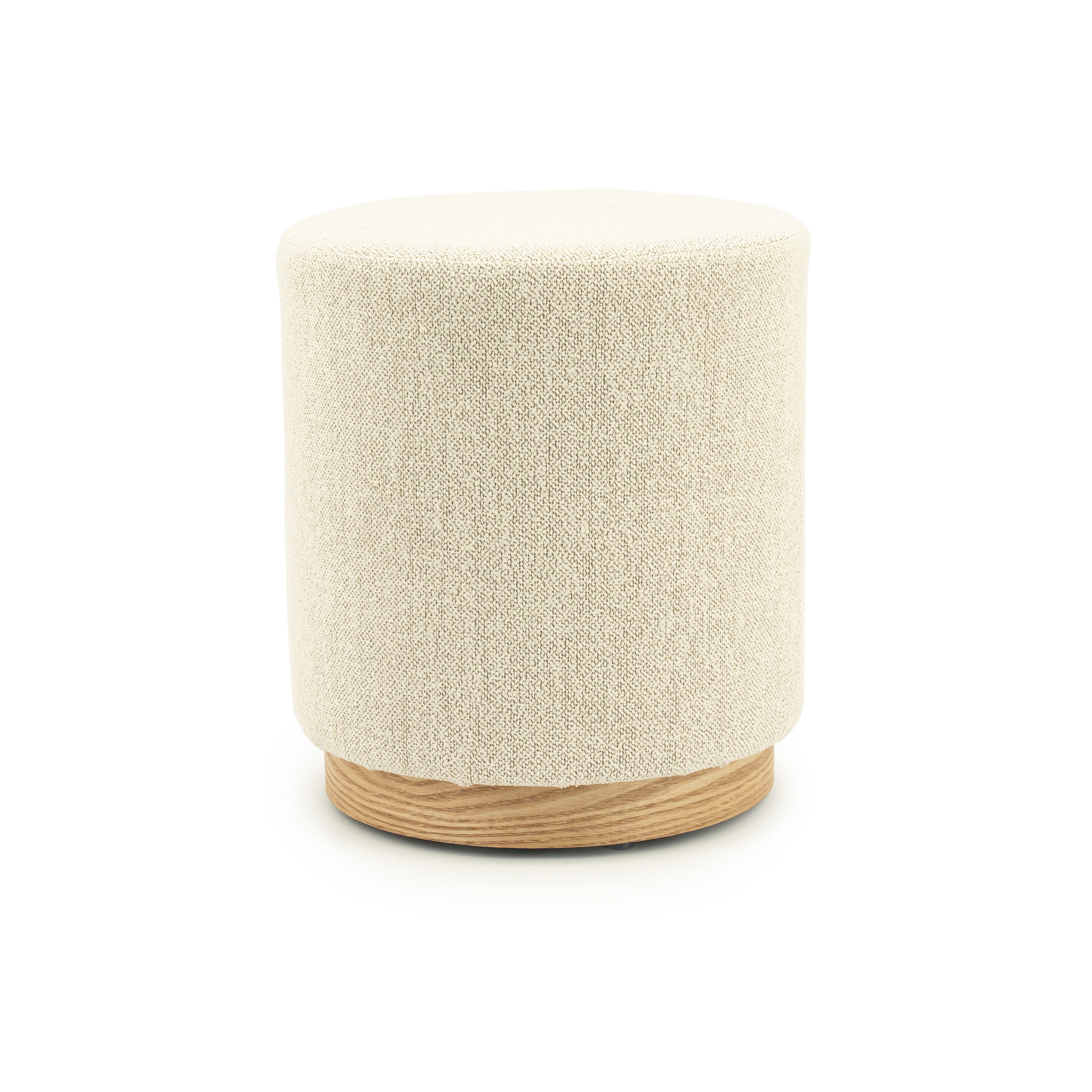 Vielseitiger Sitzpouf im skandinavischen Design – ideal als Fußhocker oder Sitzgelegenheit. In Beige mit stabilem Pinienholz-Furnier. Stilvoll, modern und sofort einsatzbereit.