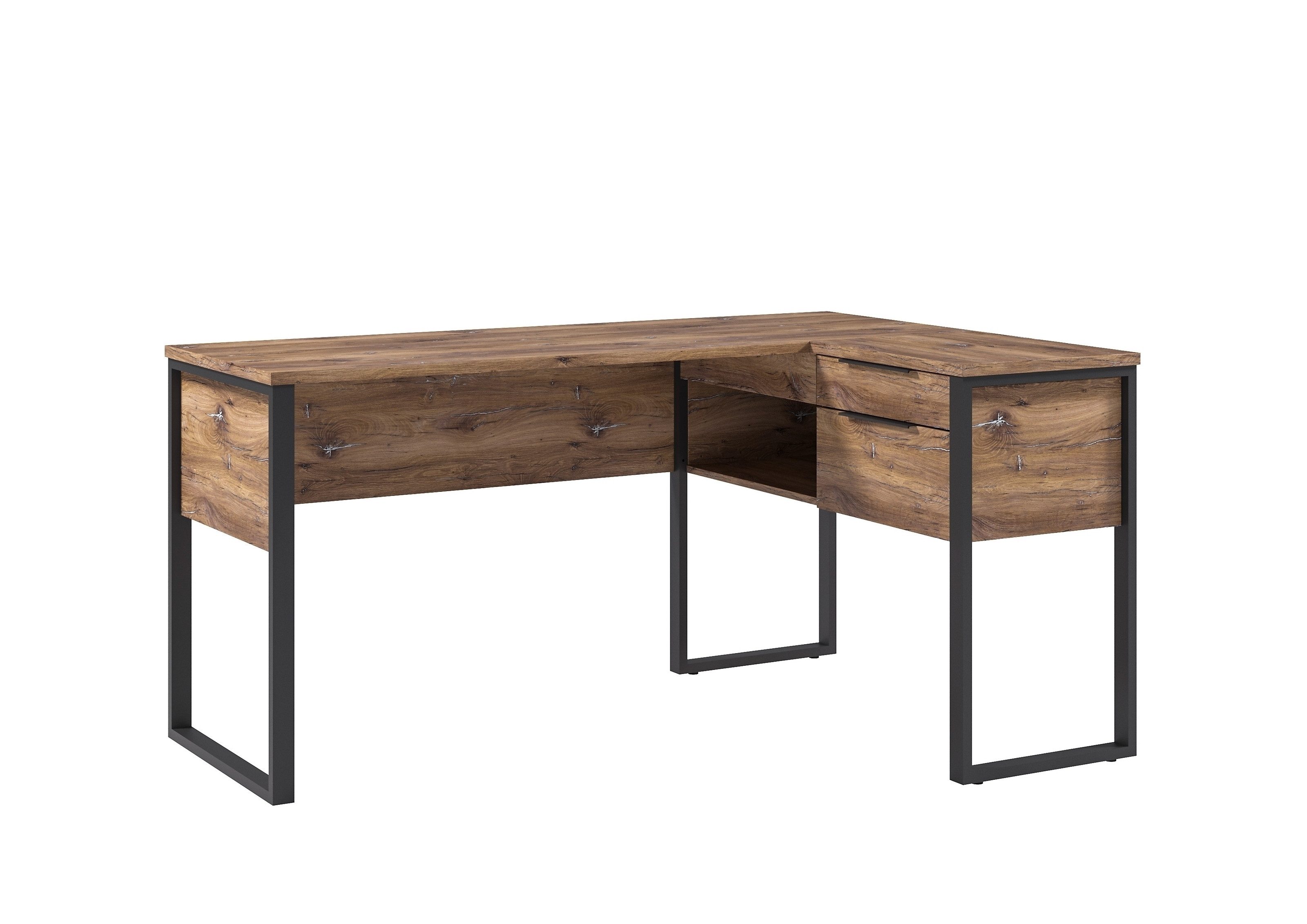 Der Eckschreibtisch Marlo ist die ideale Wahl für jedes moderne Arbeitszimmer oder Kinderzimmer. Mit seinen Maßen von 152 cm Breite, 75,5 cm Höhe und 104 cm Tiefe bietet er genügend Platz für produktives Arbeiten. Die Tischplatte aus Holzwerkstoffen in der Farbe Zinneiche ist melaminharzbeschichtet und somit besonders strapazierfähig. Das stabile Kufengestell aus schwarzem Metall sorgt für eine moderne Optik und hohe Standfestigkeit. Dank der ABS-Kanten ist Marlo besonders robust und langlebig. Marlo überzeugt nicht nur durch sein modernes Design, sondern auch durch seine Funktionalität. Der Tisch verfügt über zwei Schubladen, davon eine große mit Unterflurauszug und gedämpftem Selbsteinzug sowie eine kleine mit Kugelauszug. Die Schubladen bestehen aus hochwertigen Holzwerkstoffen und sind in der Farbe Zinneiche gehalten, passend zur Tischplatte. Ergänzt wird das Design durch schwarze Metallgriffe, die sich harmonisch ins Gesamtbild einfügen. Besonders praktisch ist die flexible Aufbauweise von Marlo. Der Schreibtisch kann sowohl mit dem Schenkel links als auch rechts montiert werden, um sich optimal an die jeweiligen Raumgegebenheiten anzupassen. Die 55 cm tiefe Arbeitsfläche bietet genügend Platz für Laptop, Bücher und Büroaccessoires. Darüber hinaus steht ein offenes Fach zur Verfügung, das weiteren Stauraum bietet. Die feste Montage der Tischplatte gewährleistet zusätzliche Stabilität. Hergestellt in Deutschland, zeichnet sich Marlo durch hochwertige Verarbeitung und langlebige Materialien aus. Das Kufengestell aus Metall verleiht dem Schreibtisch nicht nur Stabilität, sondern sorgt auch für ein zeitgemäßes Design. Die Lieferung erfolgt zerlegt in drei Packstücken, eine detaillierte Aufbauanleitung ist im Lieferumfang enthalten. Marlo ist die perfekte Ergänzung für stilvolle und funktionale Arbeitsbereiche.