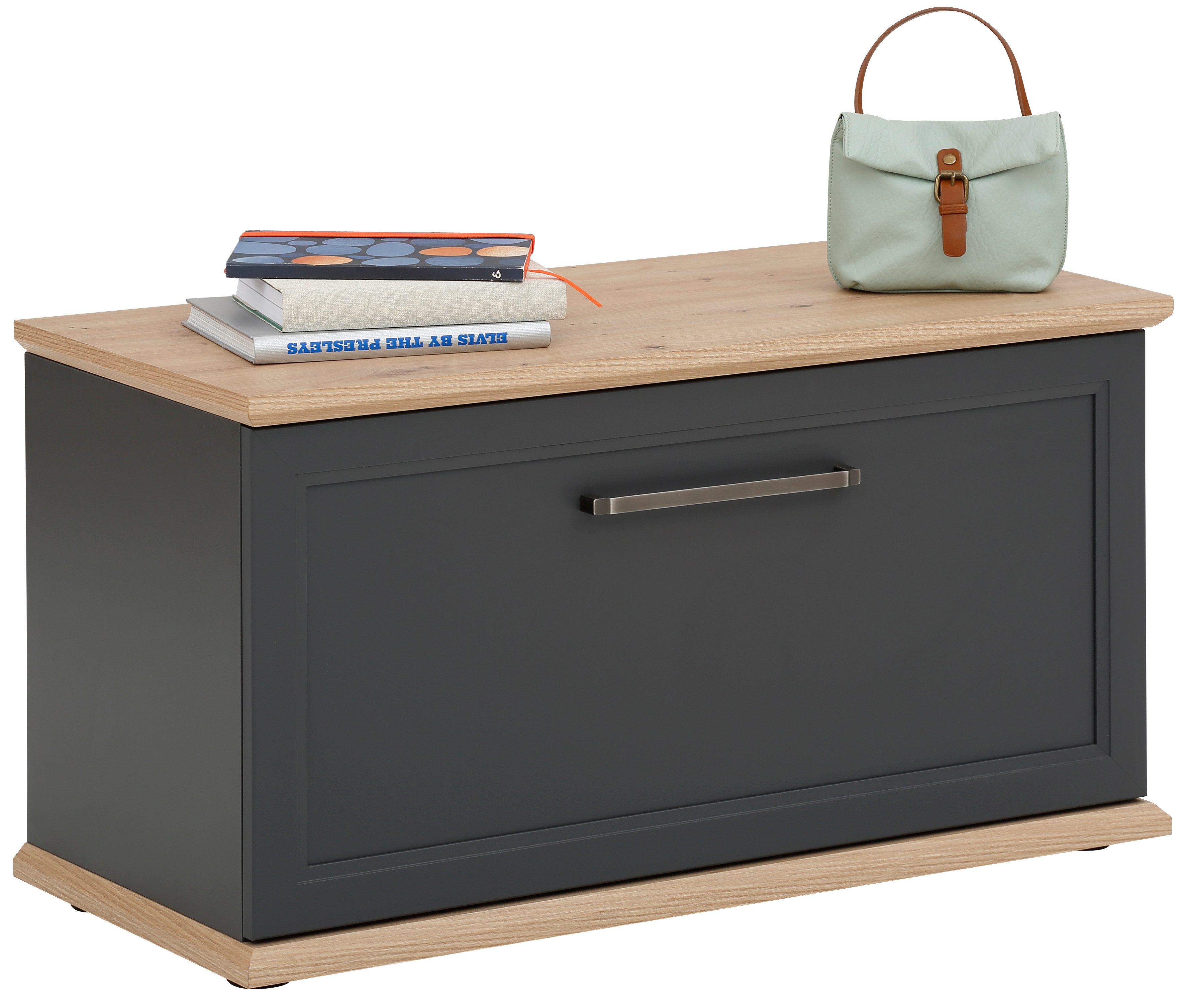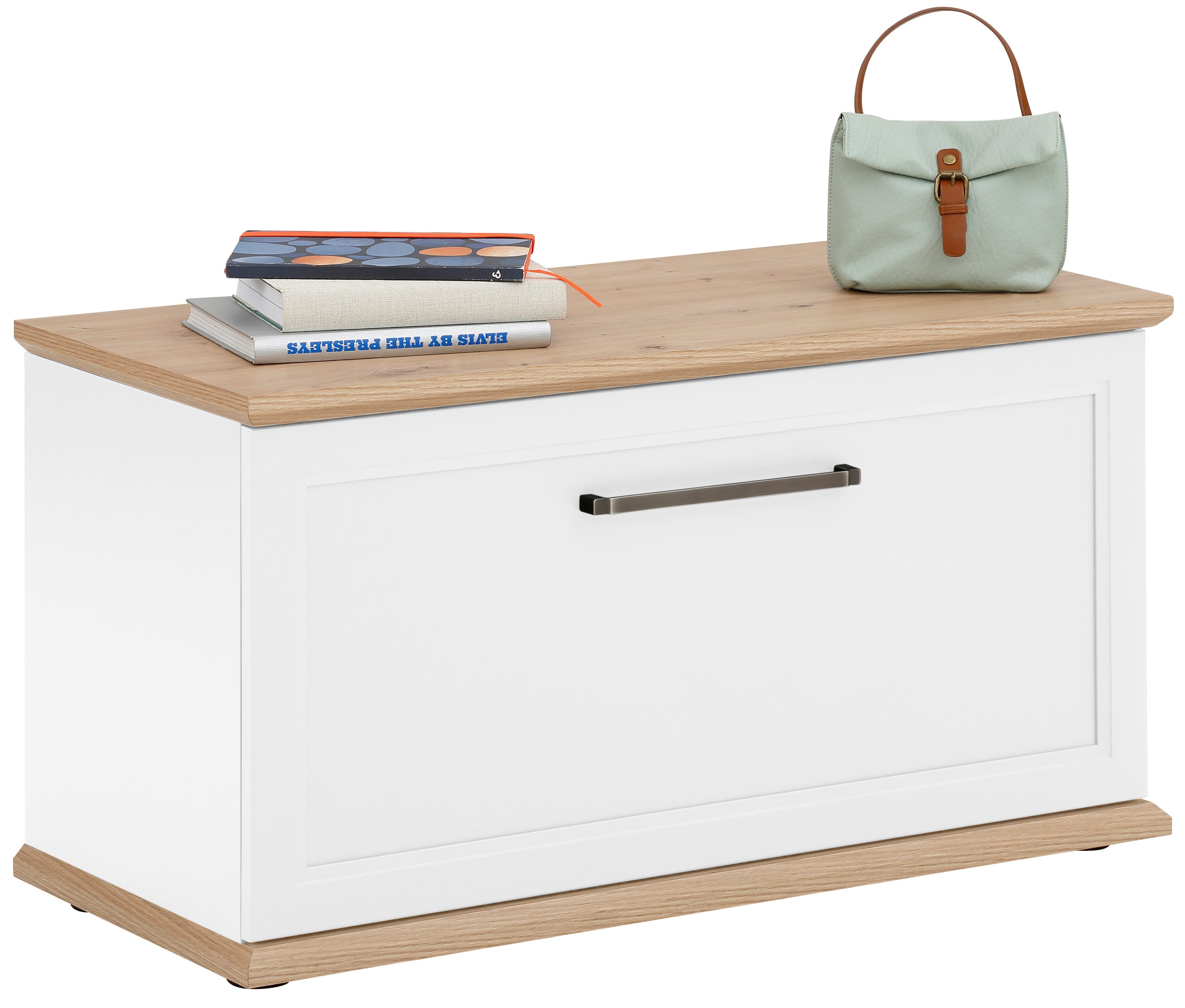 Hochwertige Sitzbank aus Dekorspanplatte Ast-Eiche und MDF-Rahmenplatten bieten zeitlosen, eleganten Look und funktionalen Stauraum für Ihr Zuhause. Perfekte Ergänzung für Flur, Wohnzimmer oder Schlafzimmer, schafft Ordnung und stilvolle Akzente. Kompakte Maße von 93*50*42 cm passen in jede Ecke und bieten dennoch ausreichend Platz für Ihre Dinge. Einfache Montage und Pflege machen diese Sitzbank zum idealen Möbelstück für moderne Wohnkonzepte. Sitzbank mit Stauraum Asteiche 93*50*42cm Holzwerkstoff Diese Sitzbank dient nicht nur als gemütliche Sitzgelegenheit, sondern schafft auch zusätzlichen Stauraum. Sie wird ein echter Hingucker in deiner Inneneinrichtung sein. Robustes Material: Holzwerkstoff ist ein Material hoher Qualität mit glatter Oberfläche, das sich durch Festigkeit, Stabilität und Feuchtigkeitsbeständigkeit auszeichnet. Viel Stauraum: Die Flurbank bietet reichlich Stauraum zur ordentlichen Aufbewahrung von Kleidung, Spielzeug, Kissen, Büchern oder anderen persönlichen Gegenständen. Bequeme Sitzgelegenheit: Das dick gepolsterte Sitzkissen bietet höchsten Sitzkomfort. Stabile Scharniere: Dank der stabilen Scharniere mit Soft-Close Funktion kann der Deckel offen gelassen werden, um die Hände zum Aufräumen deiner Sachen frei zu haben, und schliesst dann sanft allein. Vielseitig einsetzbar: Die Bank lässt sich als Schuhbank im Flur oder als Aufbewahrungsbank verwenden. Bank: Farbe: Ast-Eiche / weiß o. anthrazit Material: Holzwerkstoff Gesamtabmessungen (mit Kissen): 93 x 55 x 42 cm (L x B x H) Maximale Belastbarkeit: 110 kg Kissen: Farbe: Hellgrau Material: Stoff (100% Polyester) Füllung: Schaumstoff Abmessungen: 92 x 40 x 5 cm (L x B x T) Zusammenbau erforderlich: Ja Bitte beachten Sie: Diesen Artikel erhalten Sie in einem "umaufgebauten Zustand", d.h. Sie müssen ein wenig handwerklich tätig werden. Hierzu liegt dem Paket neben einer sehr leicht verständlichen Anleitung auch alle zum Zusammenbau benötigten Schrauben, Verbinder etc. bei. Lediglich Werkzeug wie Schraubendreher, Hammer etc. müssen Sie bitte selber mitbringen.