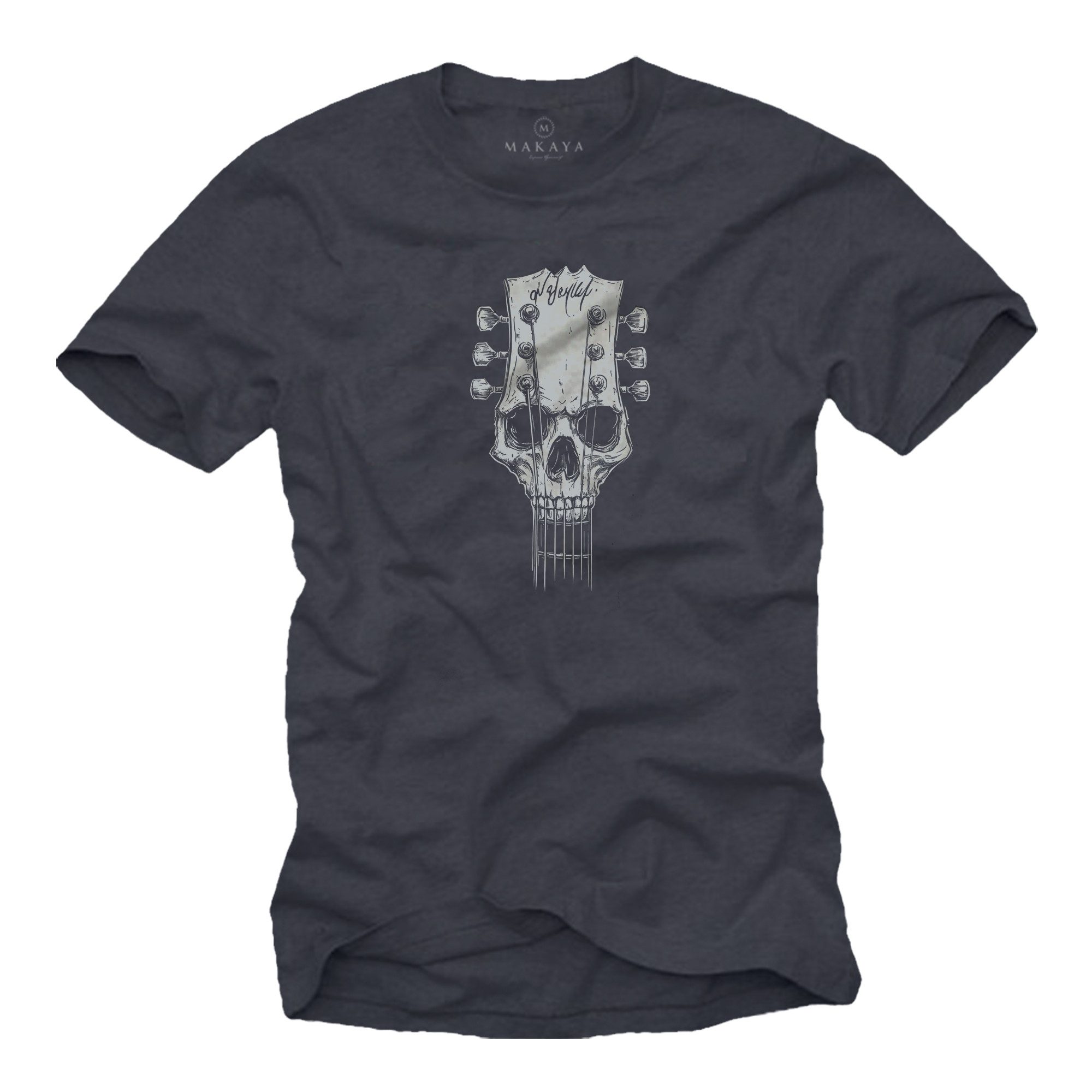 MAKAYA T-Shirt Männershirt mit Gitarrenmotiv – Totenkopf Print für Musiker (Schwarz, Blau, Grün, Grau, Blaugrau, S, M, L, XL, XXL, XXXL, XXXXL, XXXXXL) Baumwolle