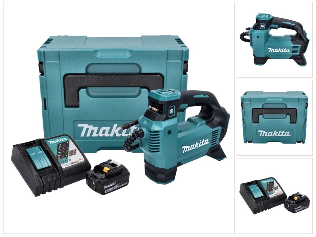 Der Makita DMP 181 Z Akku Kompressor ist der perfekte Begleiter wenn es um exaktes und effektives Aufpumpen von Reifen, Bällen und der Gleichen geht. Mit einem maximalen Druck von bis zu 11,1 bar und den drei Stufen ist er für sämtliche Arbeiten geeignet. Die verbaute LED Leuchte sorgt für ein gutes Ausleuchten der Umgebung bei schlechteren Lichtverhältnissen. Des Впередen verfügt der 18 Volt Akku Kompressor über einen 65 cm langen Schlauch und diverse Ventile. Das Digitale Display ist aus allen Winkeln gut ablesbar. Darüber hinaus merkt sich der DMP 181 die Druckeinstellung von der letzten Nutzung. Entscheidend ist auch das geringe Gewicht von gerade einmal 2,1 Kg, somit ist ein Einsatz überall möglich. Makita ist ein führender Hersteller für Elektrowerkzeug, der sich vor allem durch eine hohe Verarbeitungsqualität und eine lange Tradition auszeichnet.