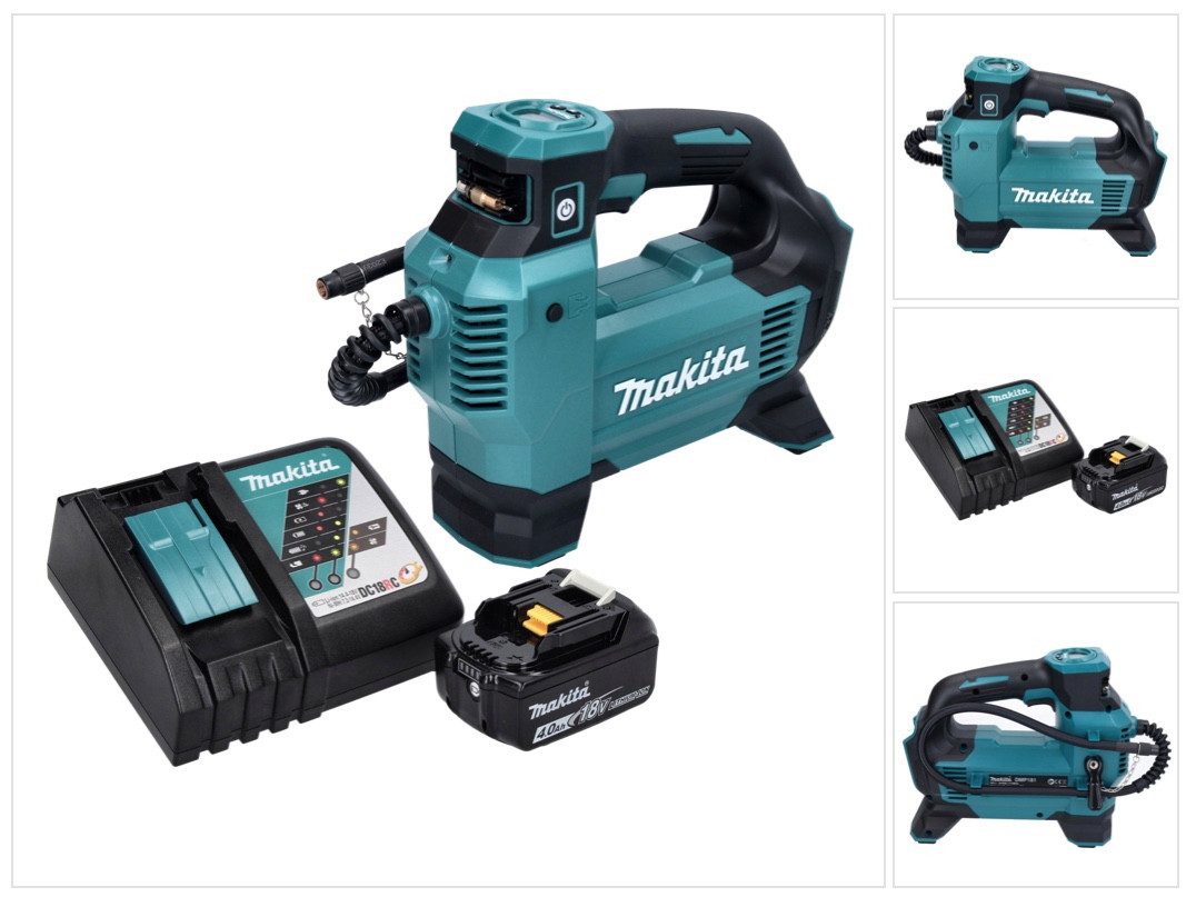 Der Makita DMP 181 Z Akku Kompressor ist der perfekte Begleiter wenn es um exaktes und effektives Aufpumpen von Reifen, Bällen und der Gleichen geht. Mit einem maximalen Druck von bis zu 11,1 bar und den drei Stufen ist er für sämtliche Arbeiten geeignet. Die verbaute LED Leuchte sorgt für ein gutes Ausleuchten der Umgebung bei schlechteren Lichtverhältnissen. Des Впередen verfügt der 18 Volt Akku Kompressor über einen 65 cm langen Schlauch und diverse Ventile. Das Digitale Display ist aus allen Winkeln gut ablesbar. Darüber hinaus merkt sich der DMP 181 die Druckeinstellung von der letzten Nutzung. Entscheidend ist auch das geringe Gewicht von gerade einmal 2,1 Kg, somit ist ein Einsatz überall möglich. Makita ist ein führender Hersteller für Elektrowerkzeug, der sich vor allem durch eine hohe Verarbeitungsqualität und eine lange Tradition auszeichnet.