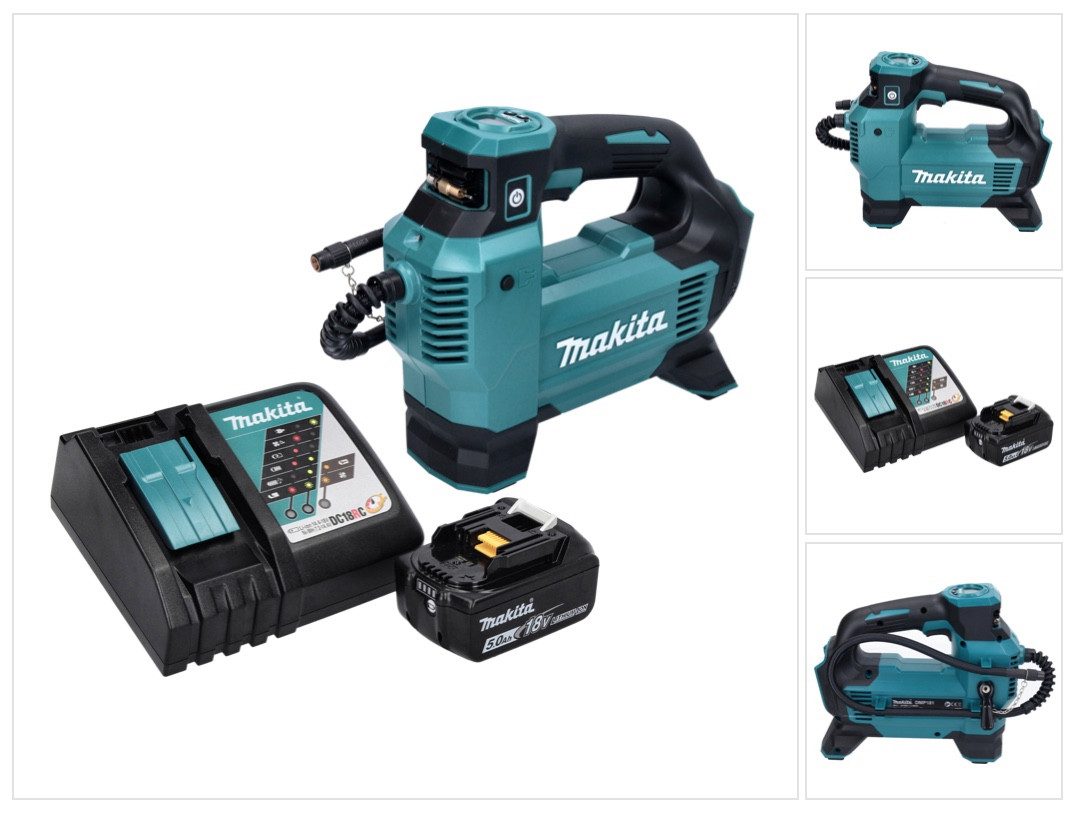 Der Makita DMP 181 Z Akku Kompressor ist der perfekte Begleiter wenn es um exaktes und effektives Aufpumpen von Reifen, Bällen und der Gleichen geht. Mit einem maximalen Druck von bis zu 11,1 bar und den drei Stufen ist er für sämtliche Arbeiten geeignet. Die verbaute LED Leuchte sorgt für ein gutes Ausleuchten der Umgebung bei schlechteren Lichtverhältnissen. Des Впередen verfügt der 18 Volt Akku Kompressor über einen 65 cm langen Schlauch und diverse Ventile. Das Digitale Display ist aus allen Winkeln gut ablesbar. Darüber hinaus merkt sich der DMP 181 die Druckeinstellung von der letzten Nutzung. Entscheidend ist auch das geringe Gewicht von gerade einmal 2,1 Kg, somit ist ein Einsatz überall möglich. Makita ist ein führender Hersteller für Elektrowerkzeug, der sich vor allem durch eine hohe Verarbeitungsqualität und eine lange Tradition auszeichnet.